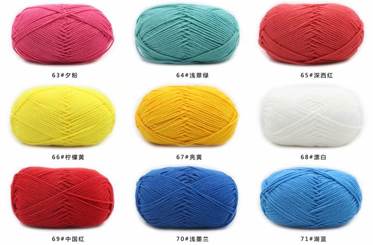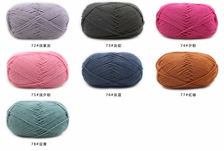 Specifications and models Turmeric 01#* 21S * 4 * milk cotton,Deep powder 02#* 21S * 4 * milk cotton,Light orange 03#* 21S * 4 * milk cotton,light purple 04#* 21S * 4 * milk cotton,Cyan 05#* 21S * 4 * milk cotton,Milky white 06#* 21S * 4 * milk cotton,Skin color 07#* 21S * 4 * milk cotton,Purple 08#* 21S * 4 * milk cotton,Chicken yellow 09#* 21S * 4 * milk cotton,Pink 10#* 21S * 4 * milk cotton,light gray 11#* 21S * 4 * milk cotton,light red 12#* 21S * 4 * milk cotton,light green 13#* 21S * 4 * milk cotton,light blue 14#* 21S * 4 * milk cotton,Water green 15#* 21S * 4 * milk cotton,light yellow 16#* 21S * 4 * milk cotton,Indigo 17#* 21S * 4 * milk cotton,khaki 18#* 21S * 4 * milk cotton,Rice white 19#* 21S * 4 * milk cotton,Vermilion 20#* 21S * 4 * milk cotton,Black 21#* 21S * 4 * milk cotton,Green 22#* 21S * 4 * milk cotton,Light brown 23#* 21S * 4 * milk cotton,Light Rome red 24#* 21S * 4 * milk cotton,Willow green 25#* 21S * 4 * milk cotton,Dark brown 26#* 21S * 4 * milk cotton,Fog white 27#* 21S * 4 * milk cotton,Between green 28#* 21S * 4 * milk cotton,Deep Roman red 29#* 21S * 4 * milk cotton,Orange 30#* 21S * 4 * milk cotton,Coral red 31#* 21S * 4 * milk cotton,Olive green 32#* 21S * 4 * milk cotton,Deep green 33#* 21S * 4 * milk cotton,Brown 34#* 21S * 4 * milk cotton,Crimson 35#* 21S * 4 * milk cotton,Grey 36#* 21S * 4 * milk cotton,Ai Green 37#* 21S * 4 * Milk Cotton,Carmine 38#* 21S * 4 * milk cotton,silver 39#* 21S * 4 * milk cotton,Autumn yellow 40#* 21S * 4 * milk cotton,Christmas green 41#* 21S * 4 * milk cotton,Peacock blue 42#* 21S * 4 * milk cotton,Begonia powder 43#* 21S * 4 * milk cotton,navy blue 44#* 21S * 4 * milk cotton,Brick orange 45#* 21S * 4 * milk cotton,Jazz blue 46#* 21S * 4 * milk cotton,Sky blue 47#* 21S * 4 * milk cotton,Bud green 48#* 21S * 4 * milk cotton,Cherry powder 49#* 21S * 4 * milk cotton,Watermelon red 50#* 21S * 4 * milk cotton,Zhenghong 51#* 21S * 4 * milk cotton,Dark gray 52#*,Apricot 53#*,Aqua blue 54#*,Blue 55#,Golden 56#,Dark blue 57#*,Wine red 58#*,Green 59#,Bright yellow 60#*,Maroon 61#*,Deep purple 62#*,63 evening powder,Light emerald green 64#*,65 deep red,Lemon yellow 66#*,Bright yellow 67#*,Bleach 68#*,Chinese red 69#,Light ink blue 70#,Lake blue 71#*,Light purple gray 72#,Gray camel 73#*,Rouge powder 74 #,Meat powder 75#*,Gray blue 76#*,Red coffee 77#*,Douqing 78#*,Autumn fragrant green 79#*,Fruit green 80#*,Medium powder 81#*,Dark meat powder 82#*,Taro purple 83#,84 Light Chicken Yellow,85 shallow blue,86 fluorescent green