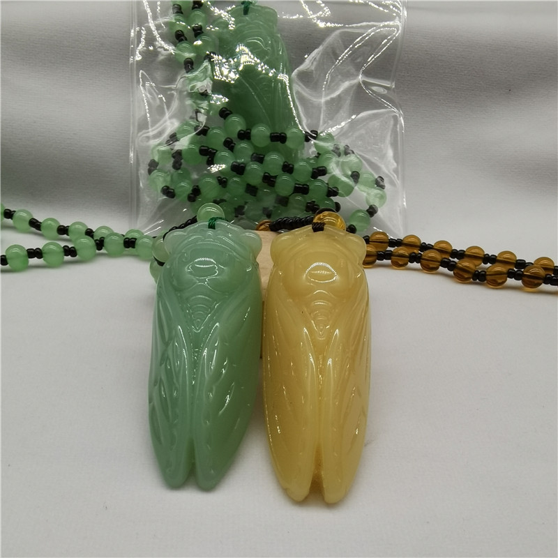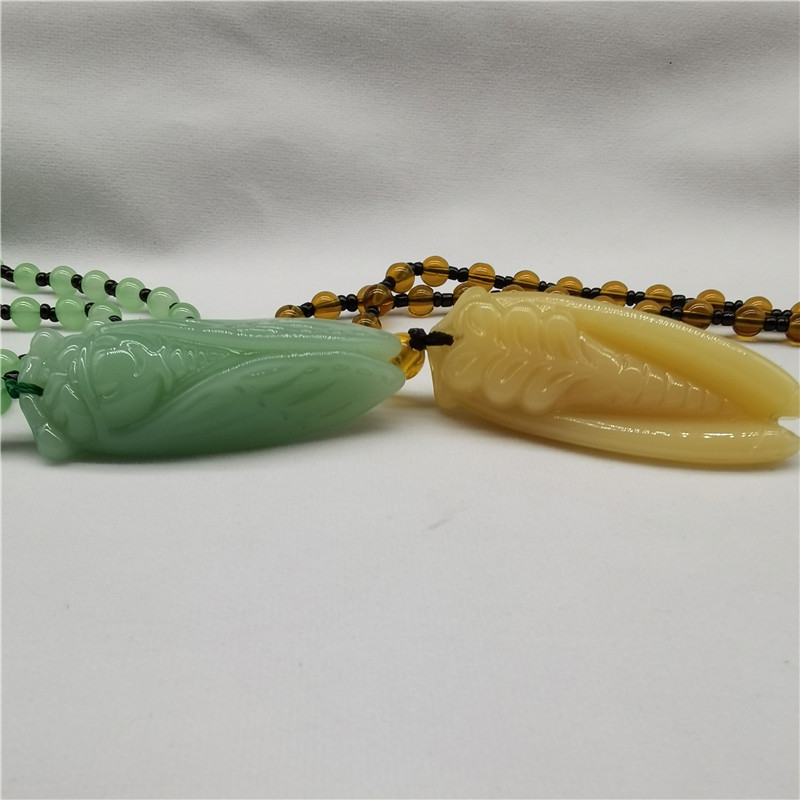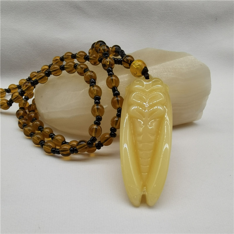 Huanglong Jade Golden Cicada Necklace, Long Style, Individually Packaged, a Sensation-Making Pendant, Suitable as a Gift for Temple Fairs, Scenic Spots, and Travel Agencies