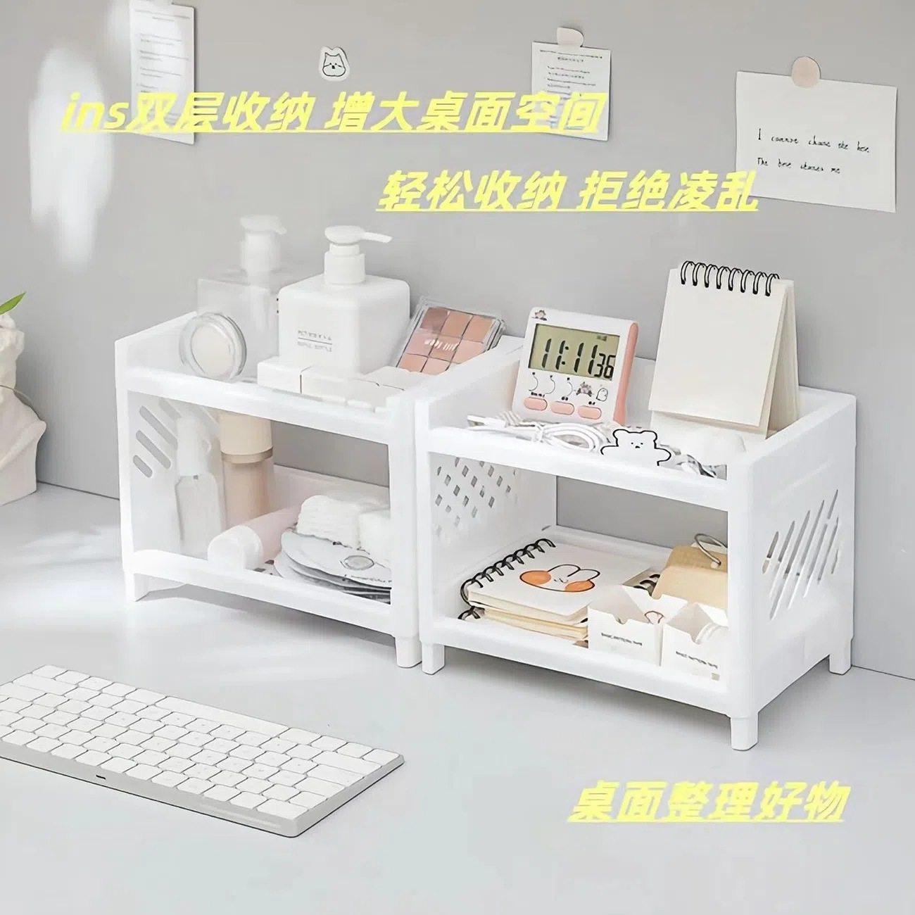 Household Double-layer Desktop Rack Kitchen Storage Rack Bathroom Plastic Storage Rack Floor Triangle Square Three-layer Storage Rack