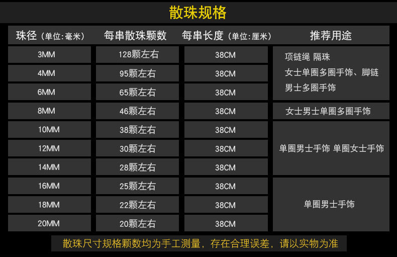 Model 4mm (about 95 pieces per piece),6mm (about 65 pieces per piece),8mm (about 47 pieces per piece),10mm (about 37 pieces per piece),12mm (about 33 pieces per piece),14mm (about 28 pieces per piece)