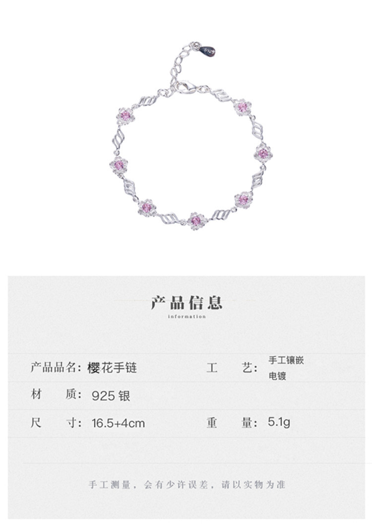 Japanese and Korean style sweet girl heart bracelet female pink zircon cherry blossom bracelet ins Net red style personalized bracelet bracelet