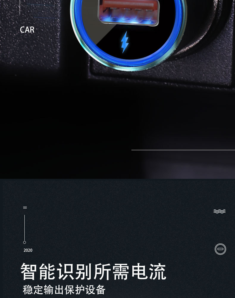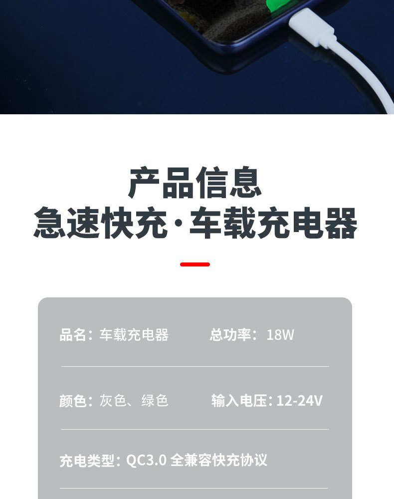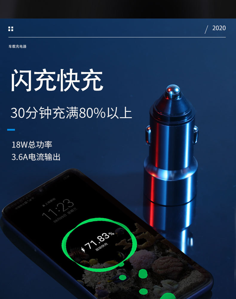 The new single QC3.0 fast charging car charger single USB car electrical 5V3600A