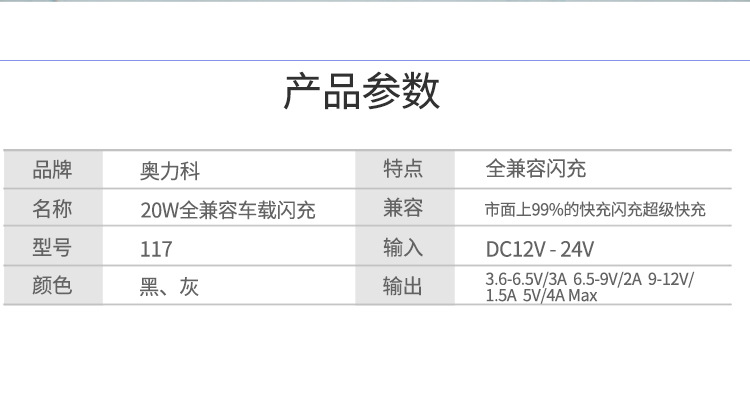 New Aolico 117 car mobile phone charger QC3.0 fast charging protocol USB fast charging compatible car charger wholesale