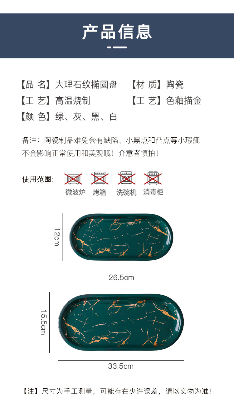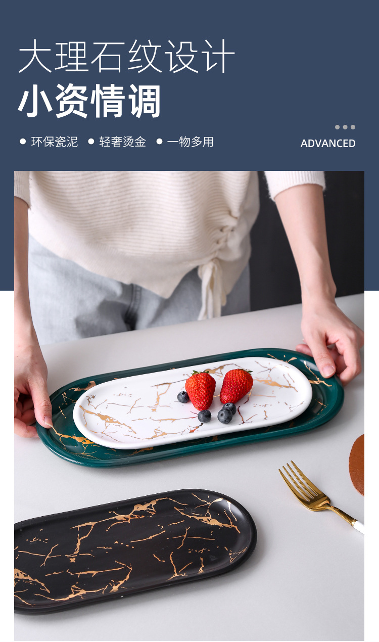 Nordic oval plate simple ceramic sushi plate steak plate creative jewelry storage tray with LOGO