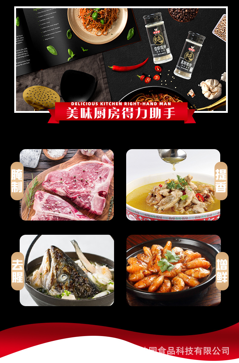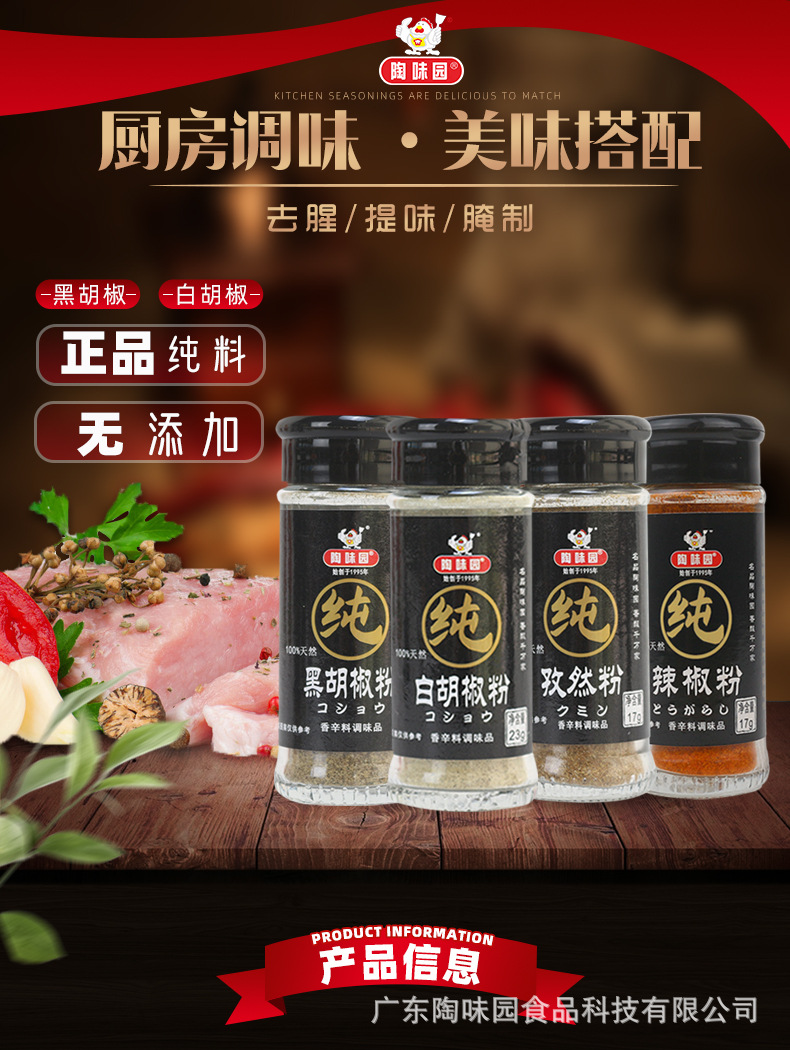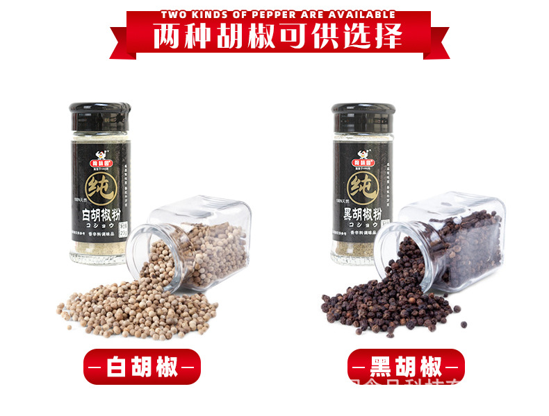 | Packaging specifications | Pure white pepper 23g * 12 bottles,Pure black pepper 23g * 12 bottles,Pure cumin powder 17g * 12 bottles |