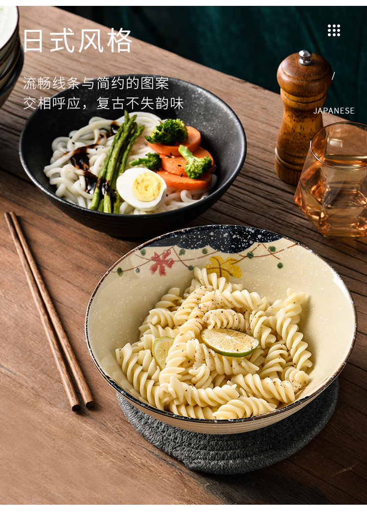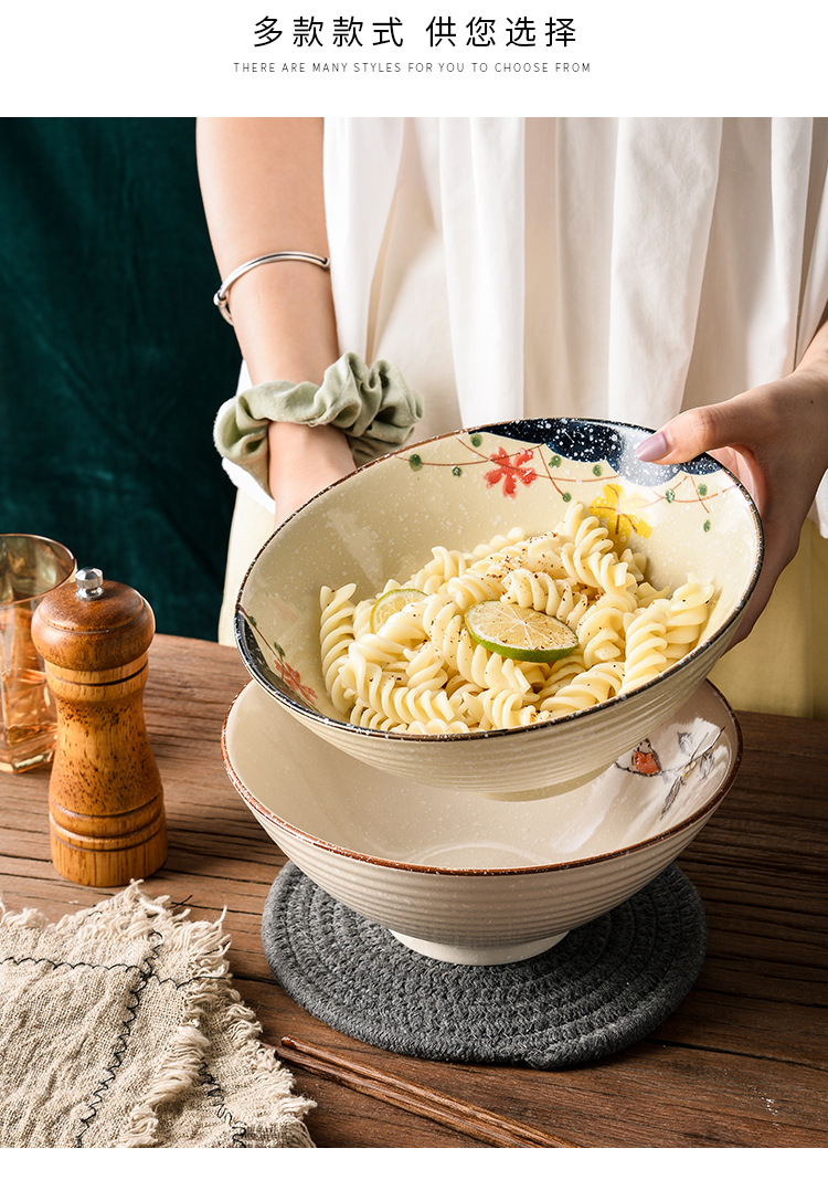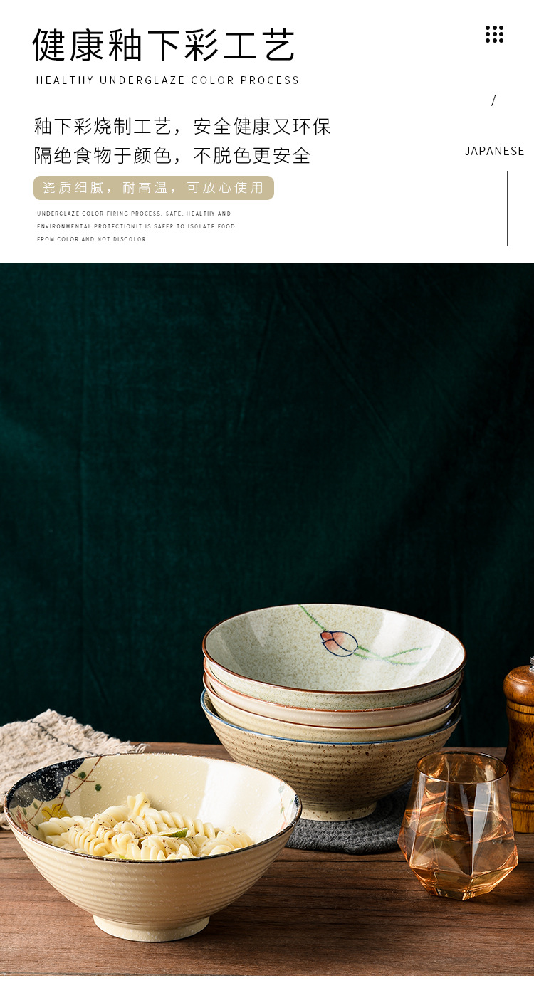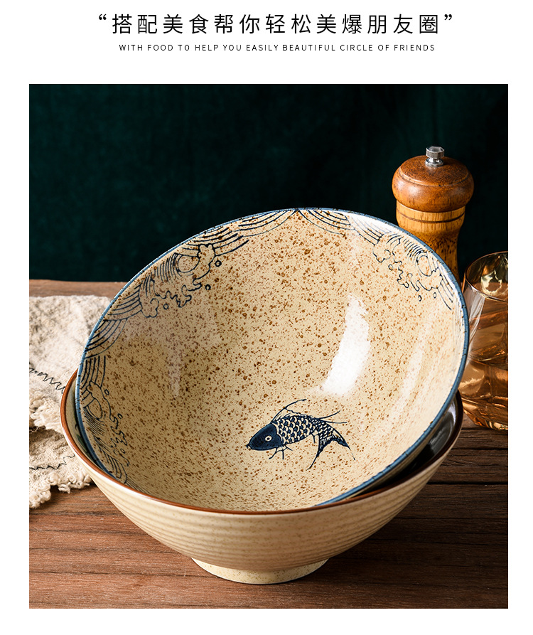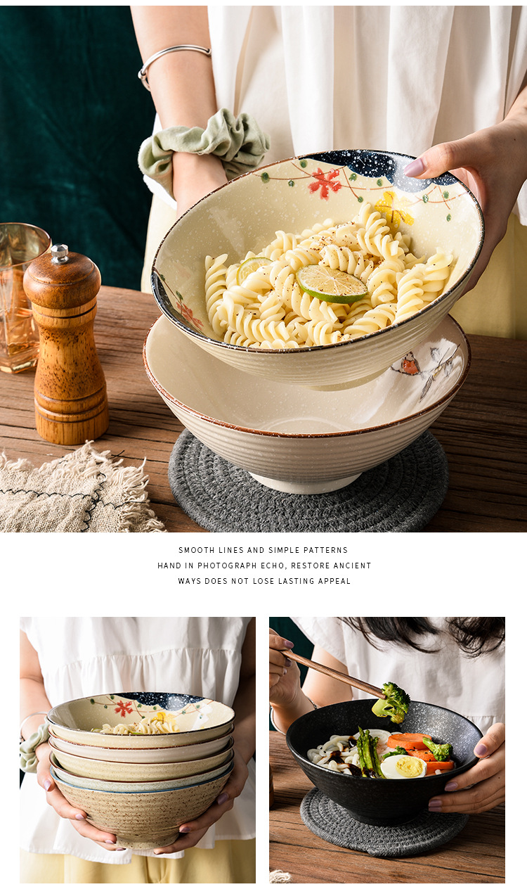 Creative Japanese-style Ceramic Bowl Underglaze Color Hand-painted 8-inch Noodle Bowl Soup Bowl Large Bucket Bowl Household Tableware Bowl