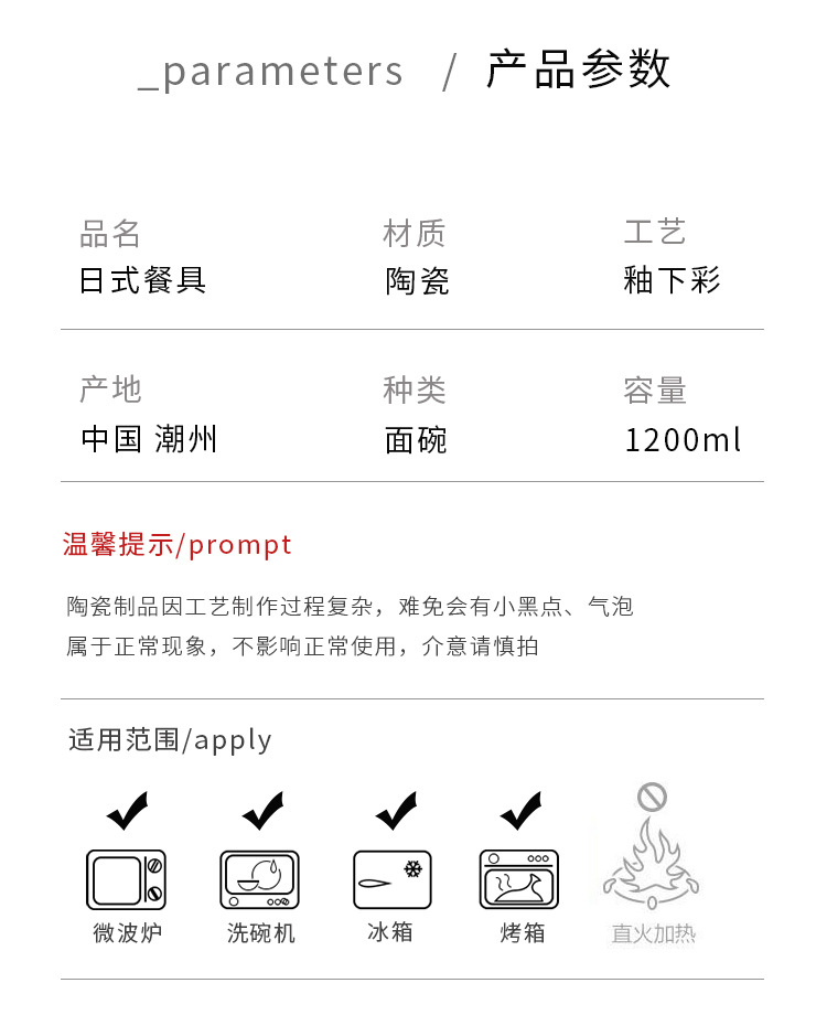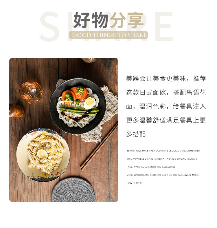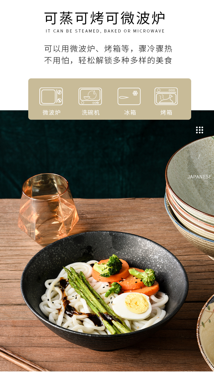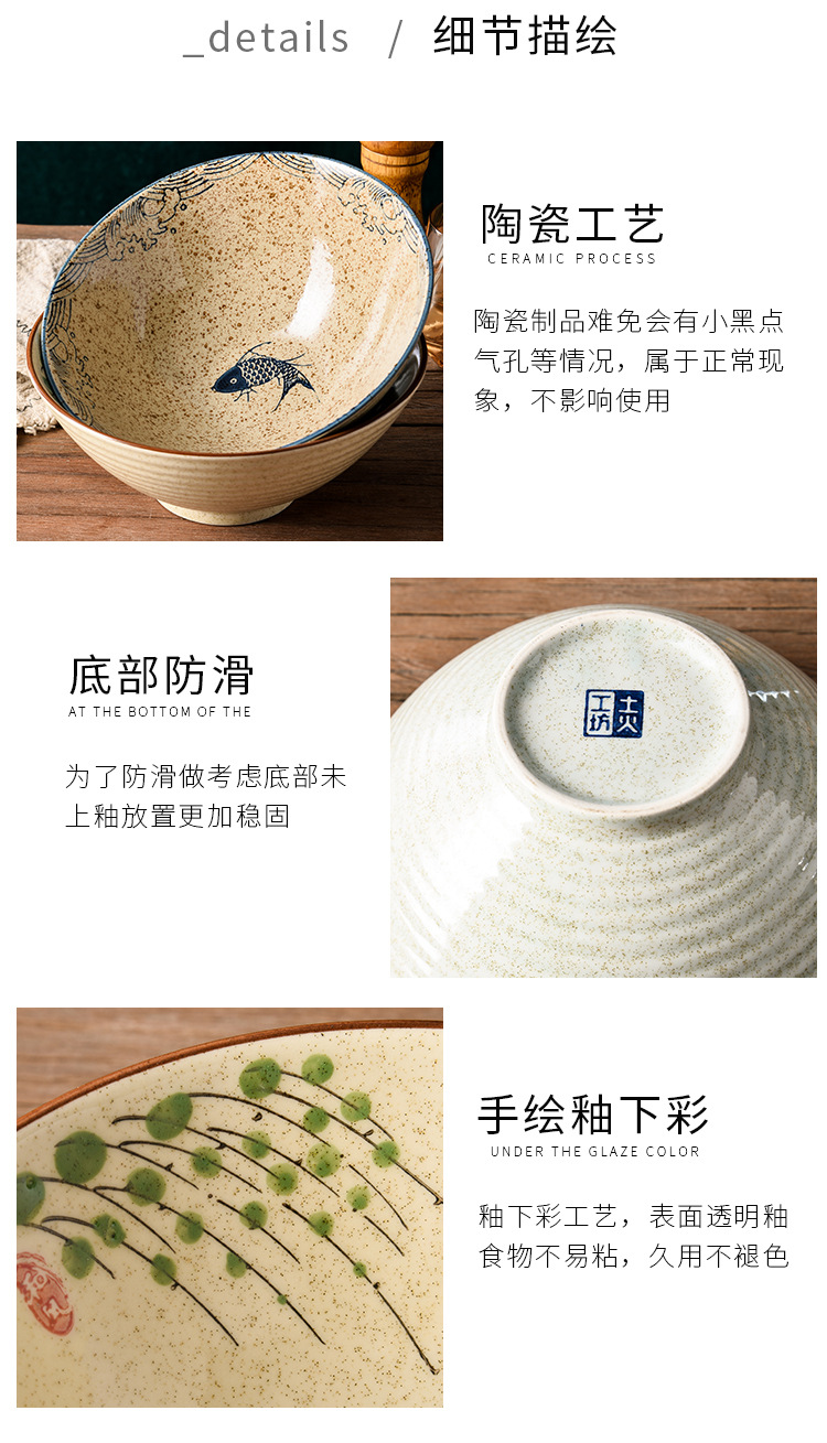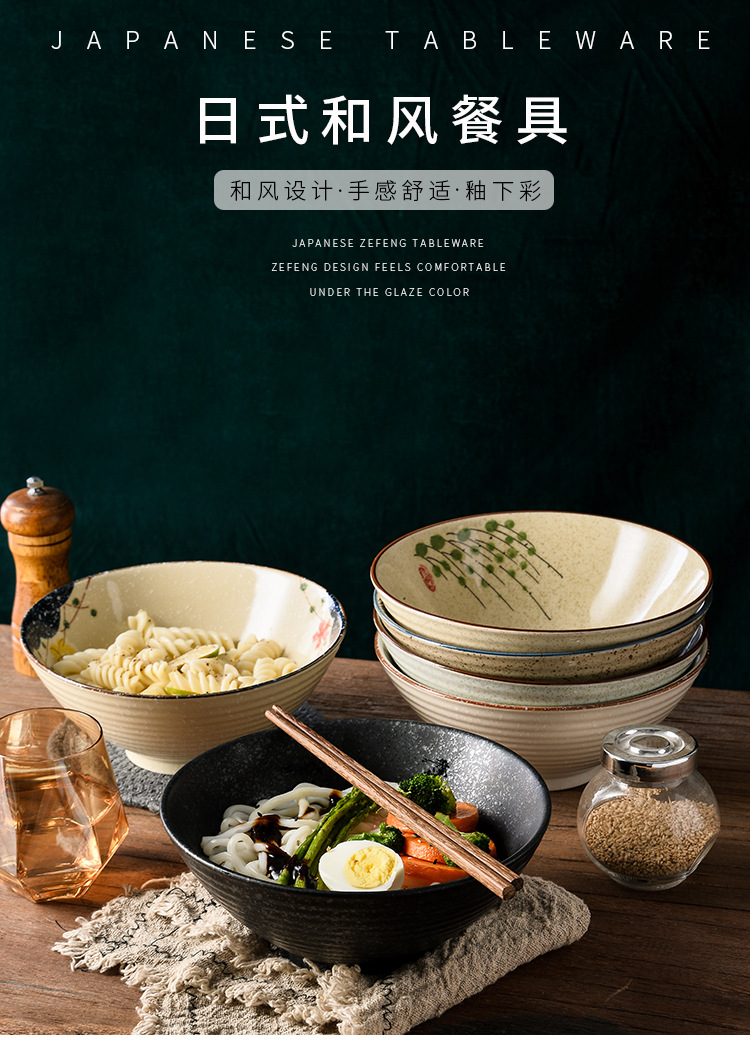 Creative Japanese-style Ceramic Bowl Underglaze Color Hand-painted 8-inch Noodle Bowl Soup Bowl Large Bucket Bowl Household Tableware Bowl