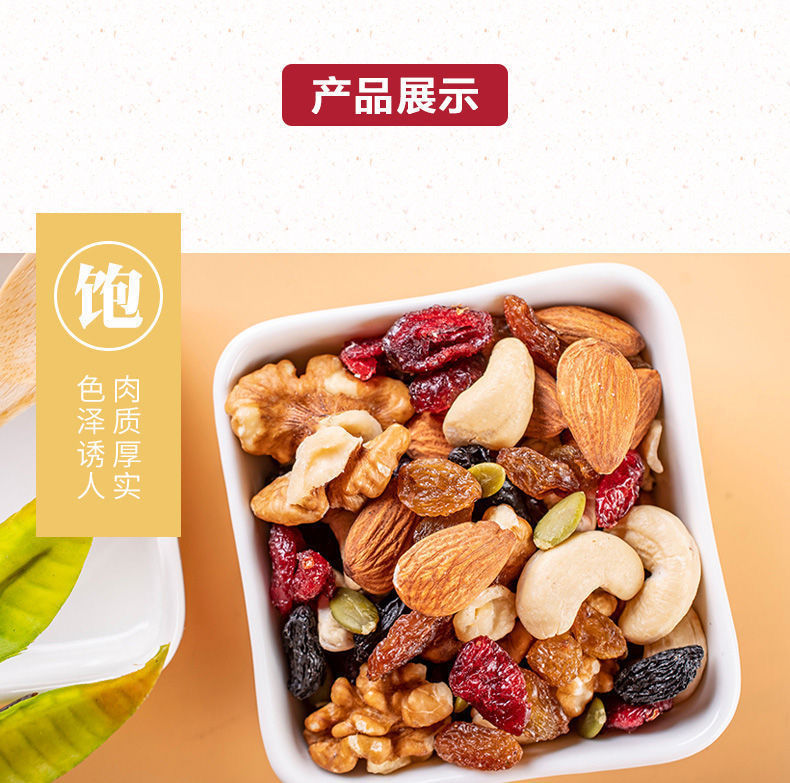 | Packing specification | 8 kinds of nuts 500g big bag,8 kinds of nuts 1000g(2 bags 500g),8 kinds of nuts 500g big bag (boutique),450g canned premium product 1 can,900g canned premium product (2 cans 450g) |