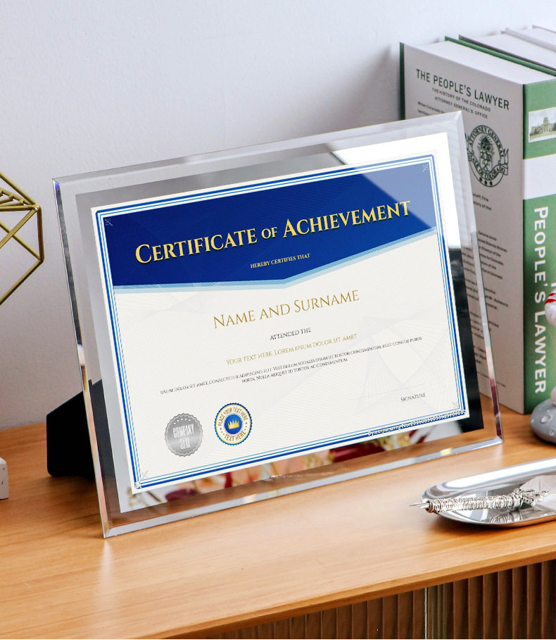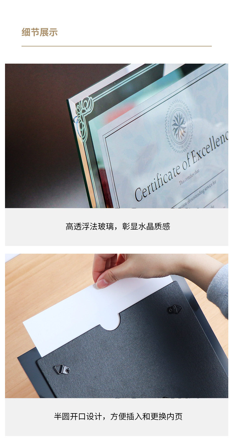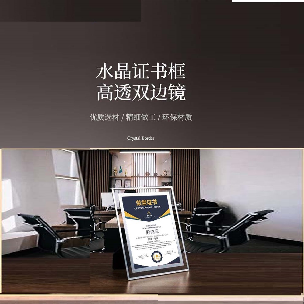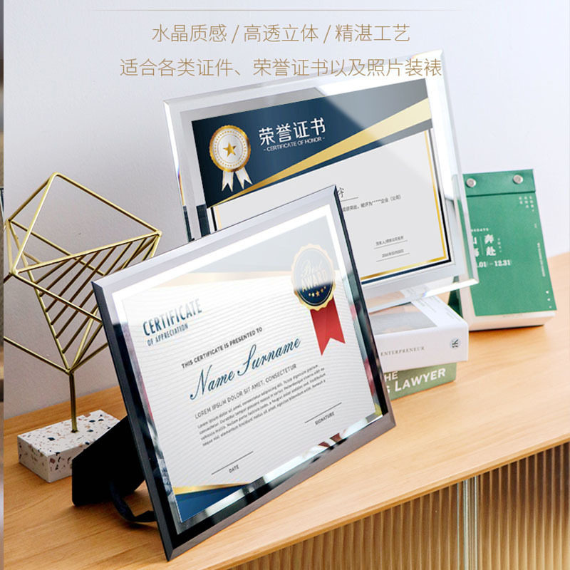Business License Frame Crystal Glass Photo Frame Wholesale Table 8inch 7inch A4 Display Frame Authorization Letter Honor Certificate Frame