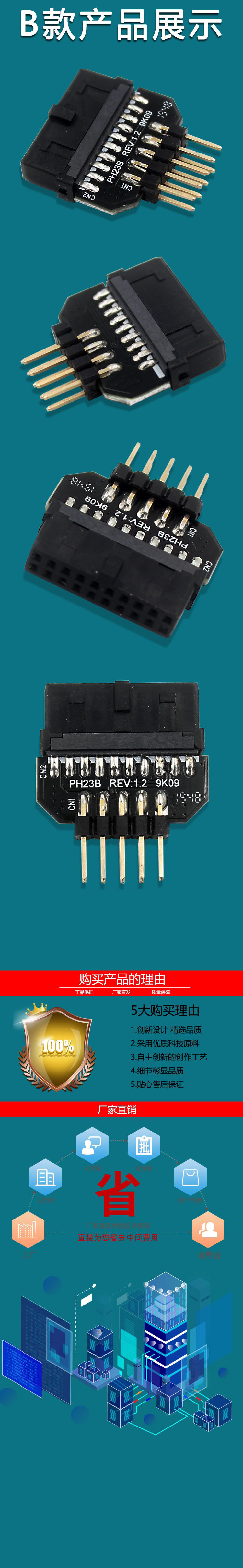 PH23 USB3.0 interconversion USB 2.0 9pin male housing to USB 3.0 20pin adapter