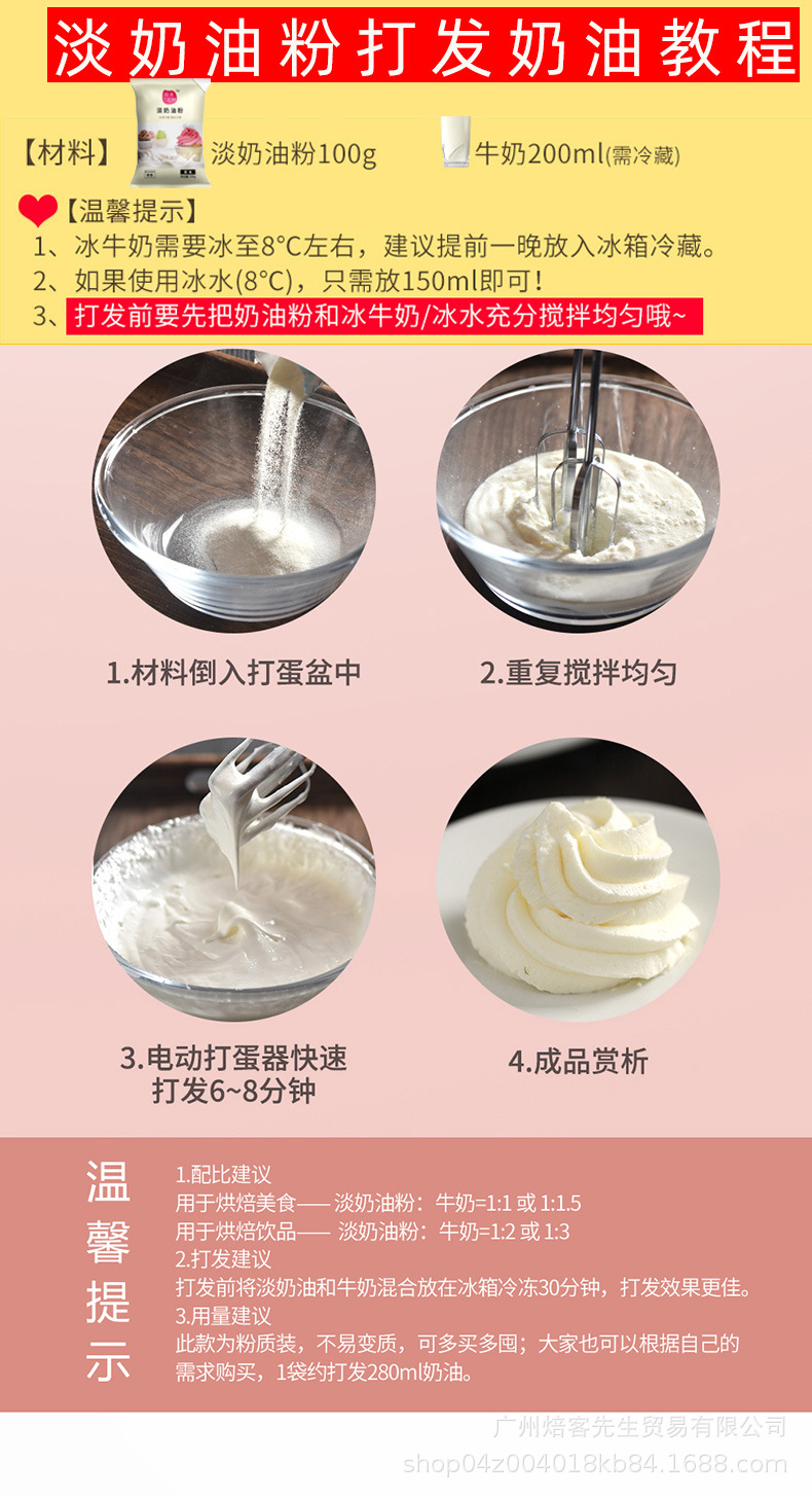 Animal light cream powder 100g cream light cream household cake decorating cream egg cream liquid material
