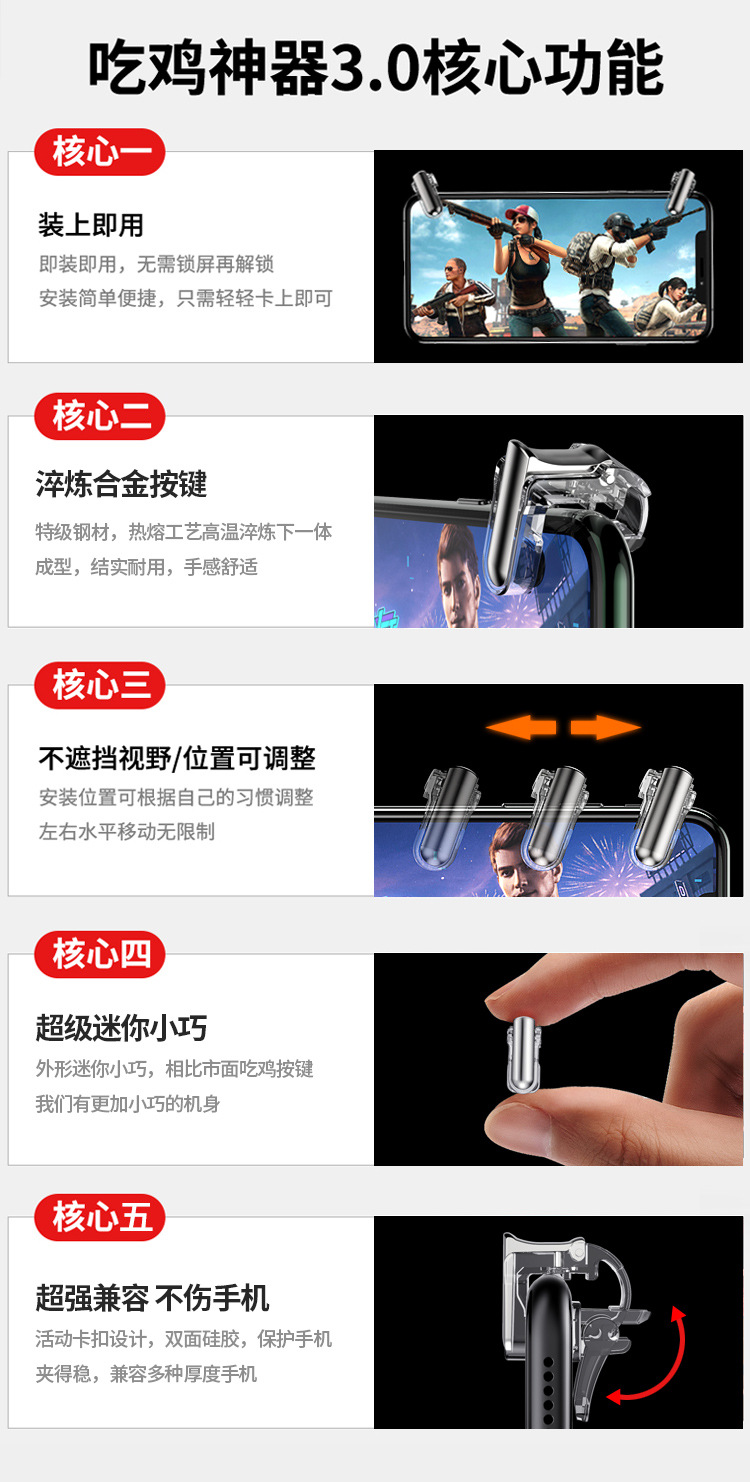 New Gt01 Chicken-Eating Artifact Mechanical Alloy Mini Chicken-Eating Buttons Physical Peripherals Auxiliary Game Controller Direct Sales