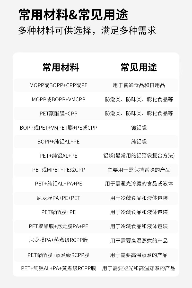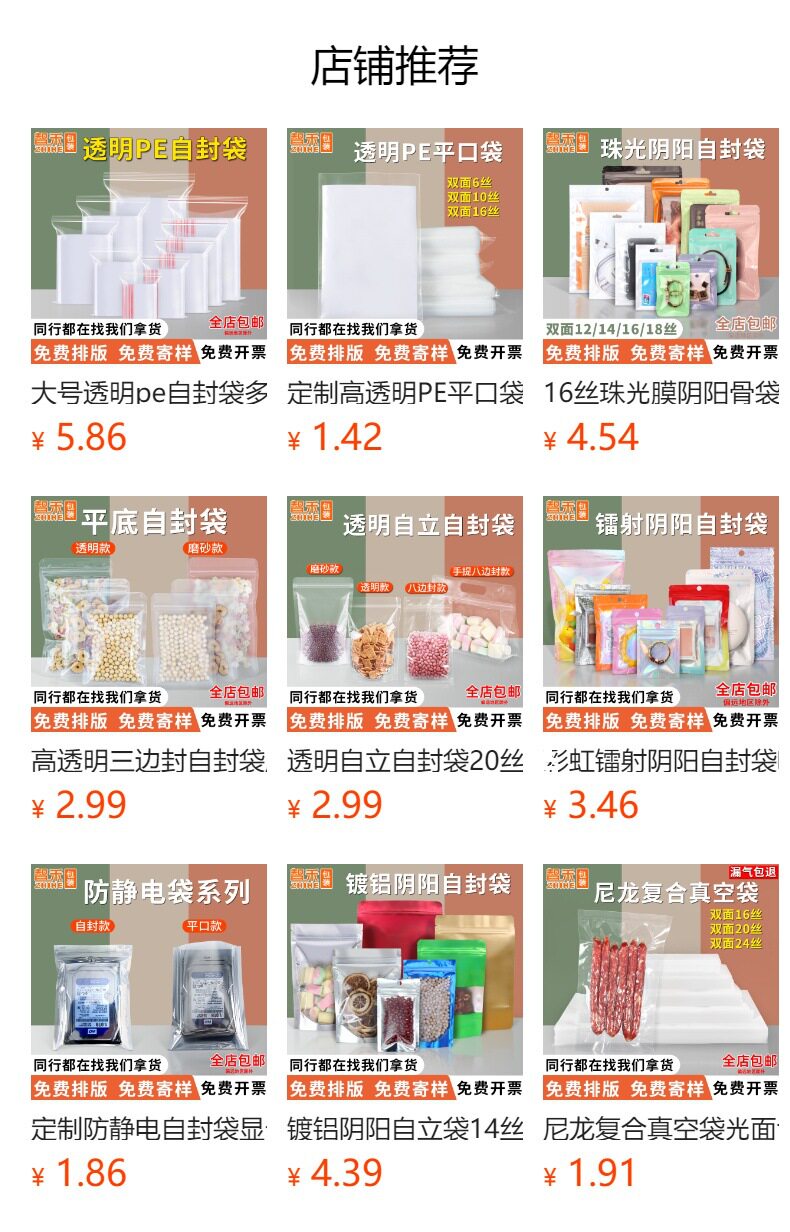 | Use | Bedding bag,Socks,Coin purse,Garbage bag,Daily necessities,Disposable gloves,Vacuum bag,Storage bag,Waterproof bag,Jewelry bag,Red bag,Electronic products,Assembly bag,Tea packaging,Gift packaging,Storage,Clothing storage box,Card storage,Dehumidification,Express packaging,Universal packaging,Cosmetic bag,Food packaging,Digital product package,Watch bag,Food preservation bags,Tea packaging bag,Gift packaging bag,Anti-rust,Jewelry packaging,Clothing bag,Belt packaging,Toy packaging,Dried fruit packaging,Hardware accessories packaging,Packing things,Gift packaging,Glasses packaging,Baking packaging,Clothing accessories,For laboratory,Food packaging bags,Clothing shoes and hats,Product outer packaging,Universal packaging bag,Watch packaging bag,Daily department store,Clothing packaging bags,Medical waste garbage bags,Vegetable packaging,Mobile phone case packaging,Pe express bag,Flower packaging bag,Fishing gear packaging,Card reader packaging bag,Emergency urine bag,Transportation packaging,Card bag packaging,Coffee packaging,Digital product packaging,Cute packaging,Mobile phone case packaging bag,Clothing packaging,Flower tea packaging,Daily necessities packaging bags,Aquatic packaging,Daily necessities packaging,Clothing packaging,Digital packaging,Chemical packaging,Casual food packaging bags,Beverage packaging,Bedding packaging,Consumable packaging,General food packaging bags,Data cable packaging bag,Chinese herbal medicine packaging,Mobile phone accessories packaging,Sock packaging,File packaging,Stationery packaging,Electronic product packaging bags,Any package,Various food packaging,Medical device packaging,Automatic packaging and rolling film,Laundry powder packaging bag,Facial mask packaging bag,Fruit and vegetable packaging,Storage bag,Wire bag,Mobile phone accessories packaging bag,Pet food packaging bag,Industrial packaging,Towel packaging,Fruit and vegetable packaging,Mask packaging bag,Mobile phone battery packaging,Electronic packaging bag,Auto supplies packaging bags,Underwear and underwear packaging,Electronic accessories packaging,Tag bag,Inner packaging of various products,Mask packaging,Wine and drink packaging,General purpose food packaging,Fruit packaging bag,Gel pen packaging bag,Scissors packaging,OPPdai,Toilet paper packaging,Cat litter packaging bag,Insole packaging,Tea ziplock bag,Grape packaging,Universal ziplock bag,Powder puff packaging bag,Tobacco packaging,Hdmi cable packaging,Small hardware packaging,Jewelry packaging,Paper packaging,Daily necessities packaging,Office stationery packaging,Food packaging bags,Leggings packaging bags,Photo packaging,Nozzle food packaging bag,Handkerchief packaging bag,Medical mask bag,Catering takeaway,Eye mask packaging bag,Grain bags,Balloon sealing clip,Cultural play bag,Laundry detergent packaging bag,Universal plastic packaging bag,Commemorative coin bag,Hose packaging bag,Sealed storage,Small pendant packaging,Facial packaging,Headscarf packaging bag,Strap packaging,Jewelry packaging storage,Shower packaging bag,Ice sleeve packaging,Sun protection clothing packaging,Rubber band jewelry packaging,Beauty daily chemical packaging,Digital home appliance packaging,Mosquito repellent buckle packaging,Clothing jewelry packaging bags,Ice sleeve packaging bag,Jewelry cardboard packaging,Zaji ziplock bag,Toy card head packaging,Plaster bag,Vegetable and fruit storage bag,Jewelry and jewelry storage bag,Book protection bag,Mobile phone and equipment packaging,Office document packaging,Medical transportation category,Universal bag packaging,Sample storage package,Medical sample packaging,Disposable daily necessities packaging bags,, baking packaging,Ornament jewelry storage bag,General packaging for glue, liquid, etc,Fishing gear packaging clothing bag,Small medicine bag for inner wear,Gift packaging, daily necessities packaging, beauty daily chemical packaging,Gift bags, food bags, clothing bags, jewelry stores, daily use,Packaging of rice, chemical fertilizer, feed, etc,Bait nest packaging,Wet wipes and wipes extraction package,Stationery materials,Paper outer and outer packaging bags,Clothing packaging bags, towel packaging, mobile phone case packaging, digital product packaging, jewelry,Hose packaging bag,Packaging of electrostatic sensitive products,Motherboard hard drive chip packaging bag,All kinds of gift packaging,Hardware parts packaging,Bracelet jewelry bag,All kinds of outer packaging bags,Daily necessities packaging bags,Tea drink bag,Jewelry 3c accessories ziplock bag,Jewelry jewelry bags,Bidet set packaging bag,Pinch mud packaging bag,Other |