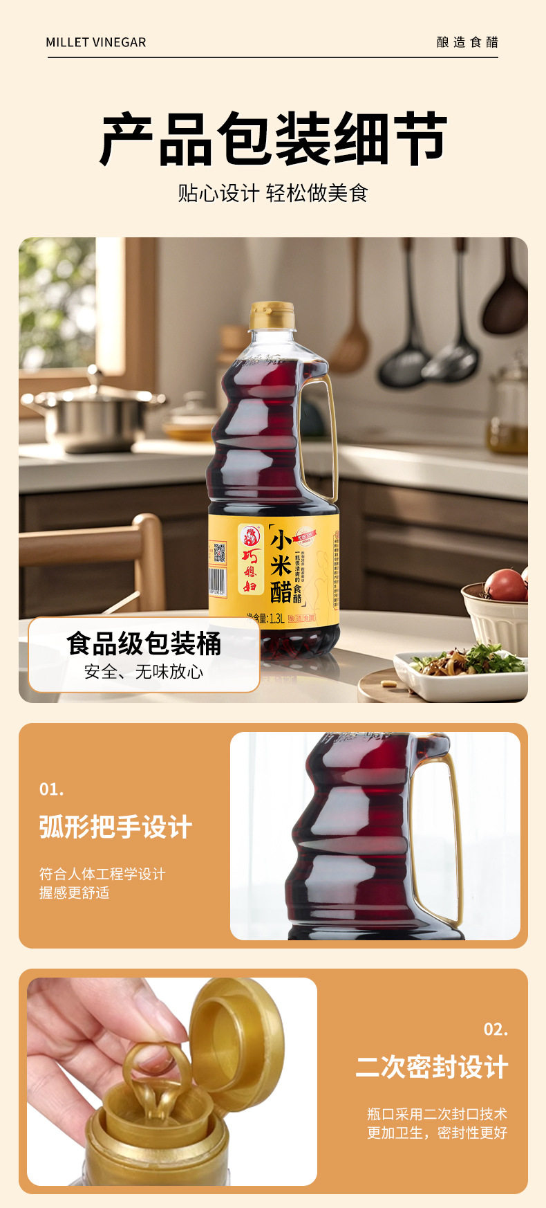 Qiaodaughter-in-law rice vinegar 1.3L brewed vinegar seasoning Stir-fried dish cold mixed dumpling vinegar affordable cold mixed rice vinegar