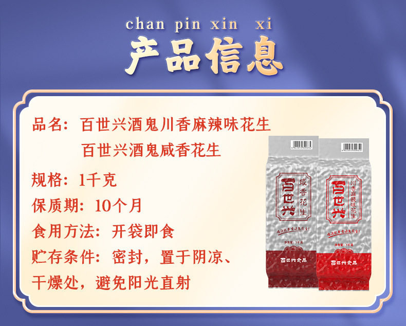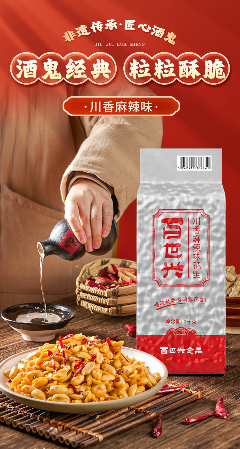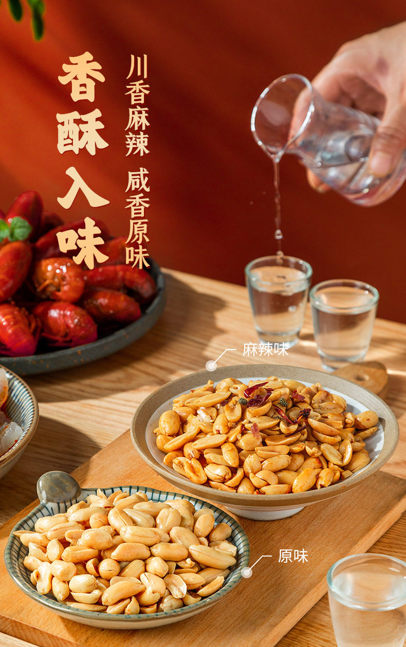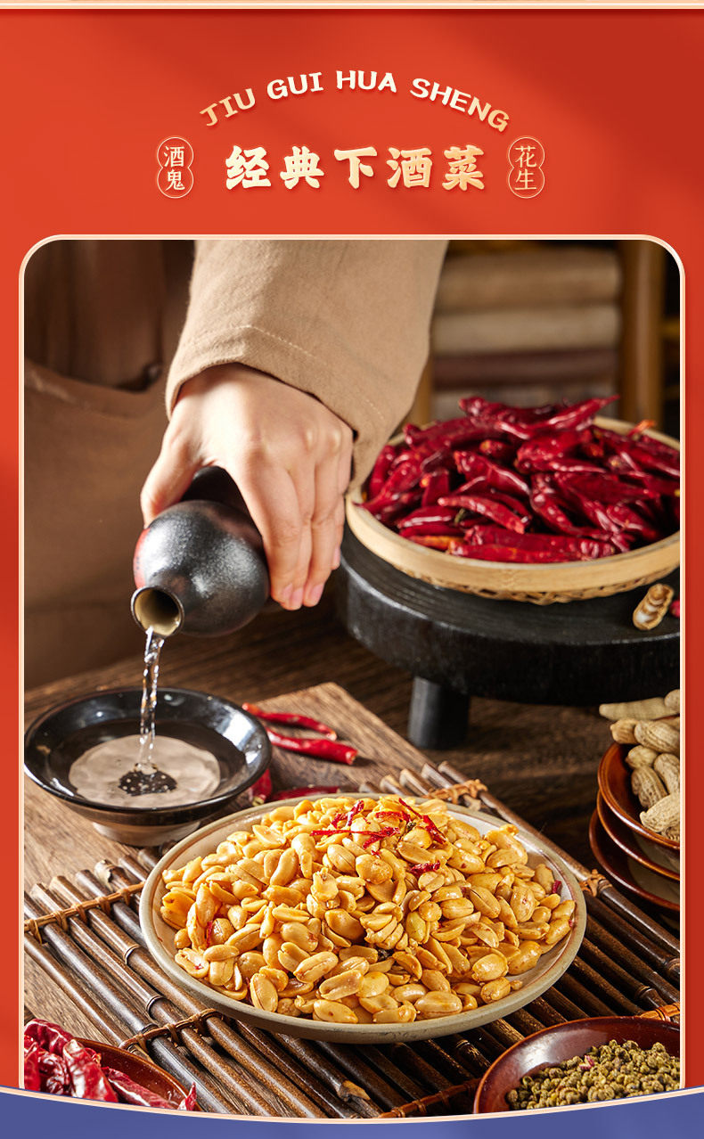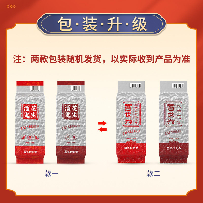 | Packaging specifications | Jiugui peanut spicy flavor 1000g,Drunkard peanut original flavor 1000g |