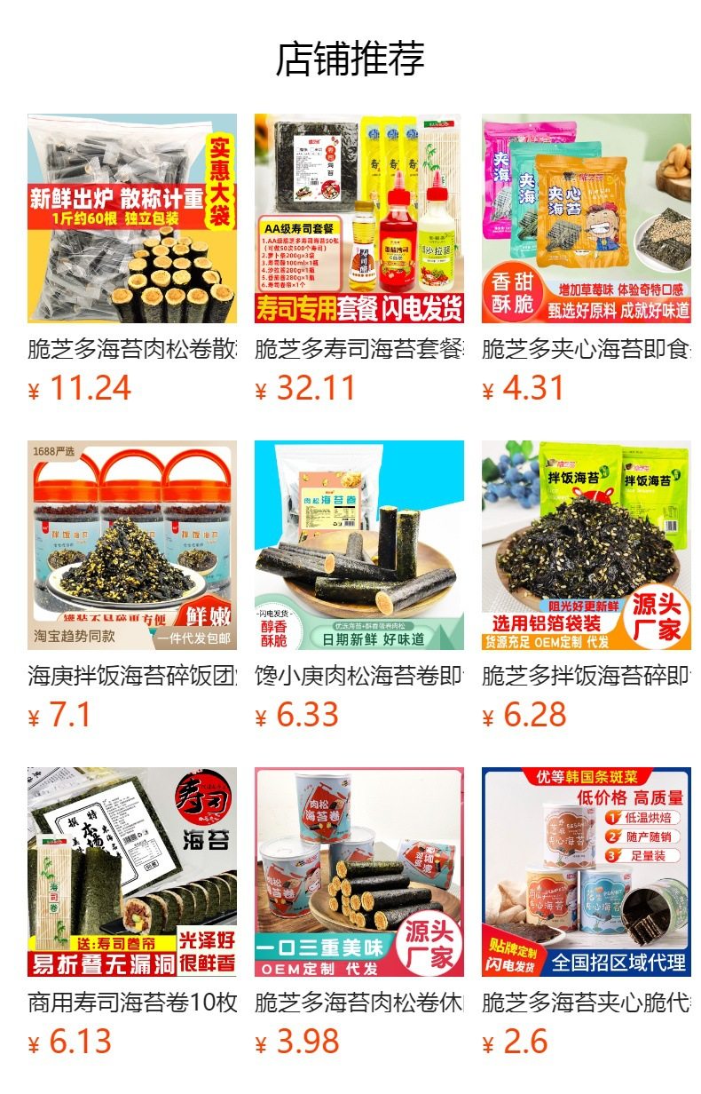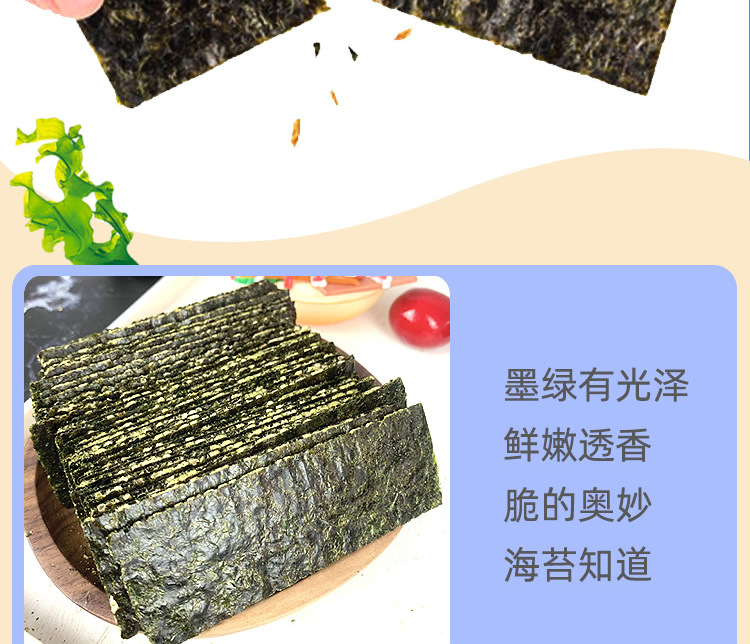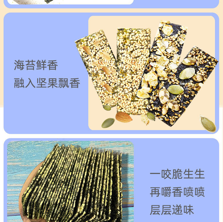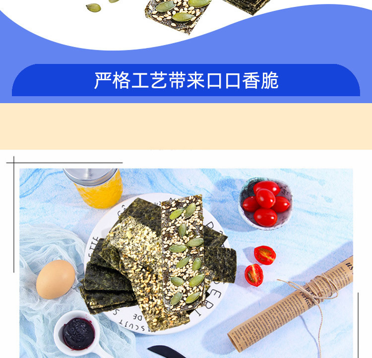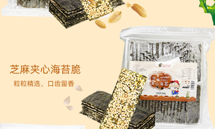 | Raw materials and ingredients | Dried laver, malt sugar powder, solid compound seasoning, sesame, etc. |