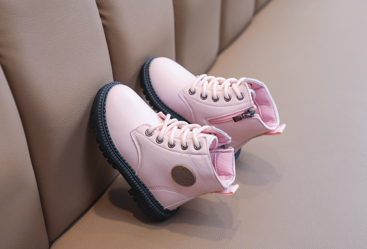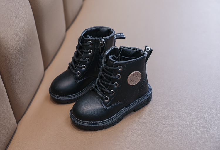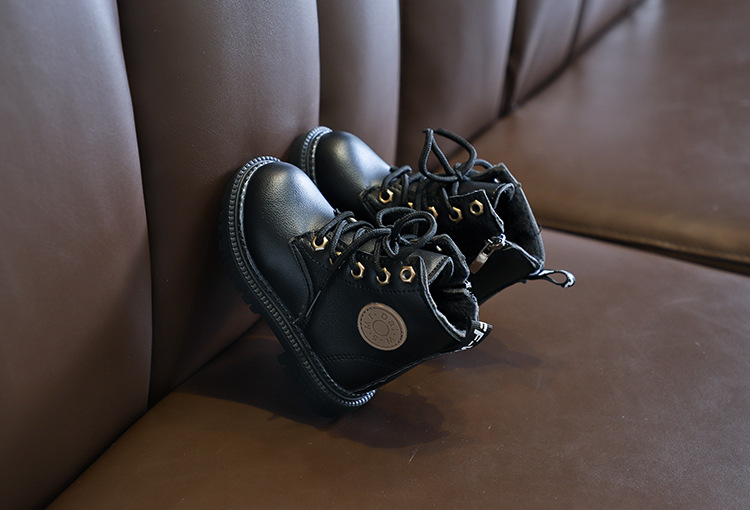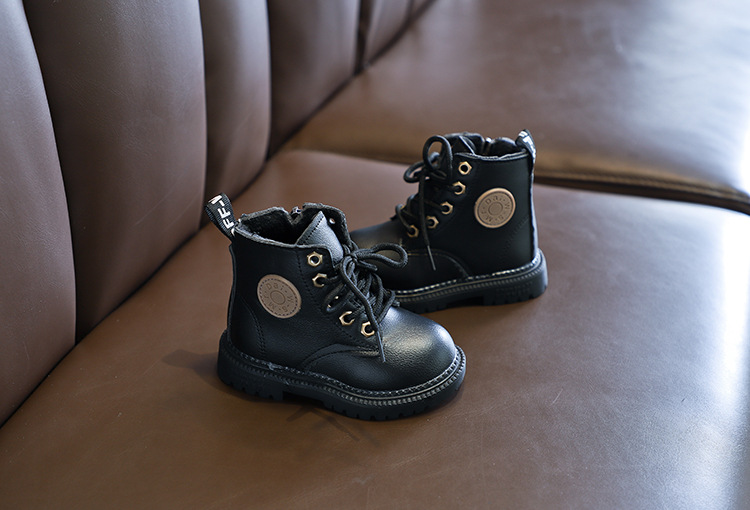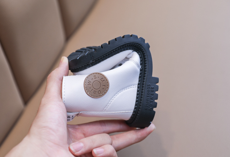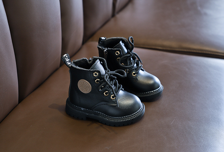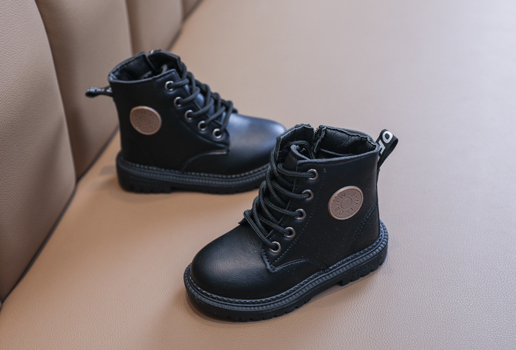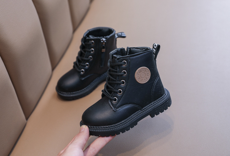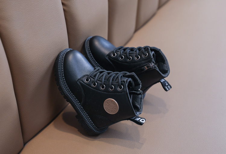 2025 Autumn and Winter Cotton Boots Soft Sole Leather Boots Children's Martin Boots Waterproof British Style Boys' Short Boots Girls' Boots Wholesale