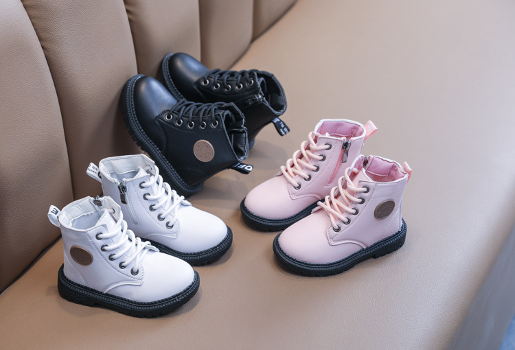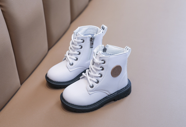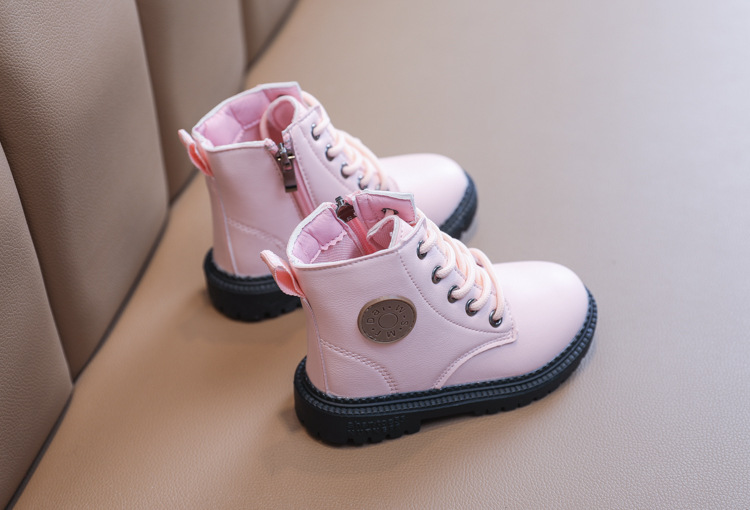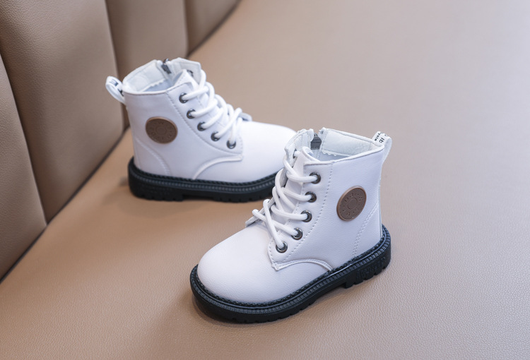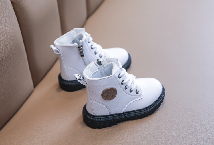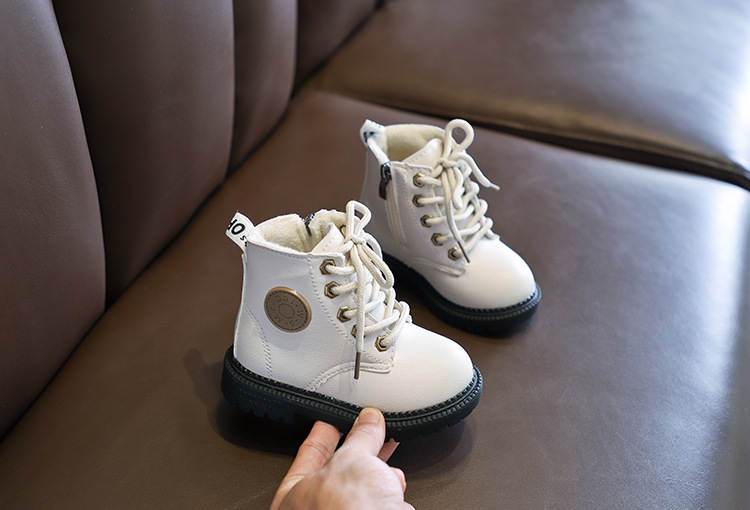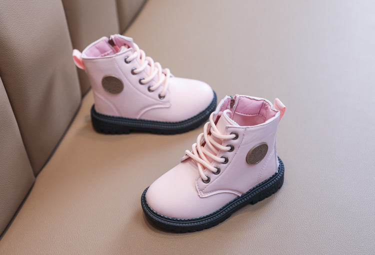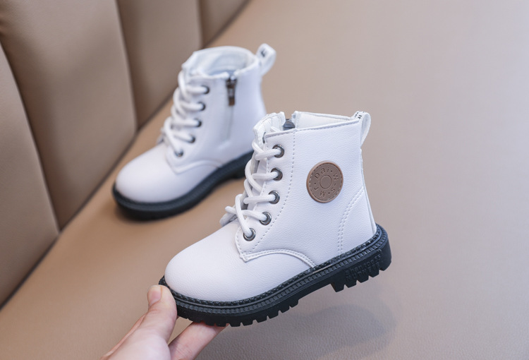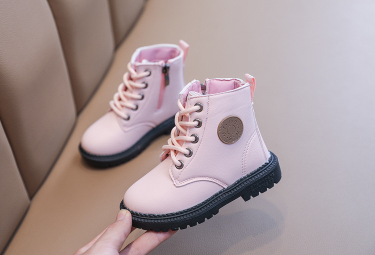 2025 Autumn and Winter Cotton Boots Soft Sole Leather Boots Children's Martin Boots Waterproof British Style Boys' Short Boots Girls' Boots Wholesale