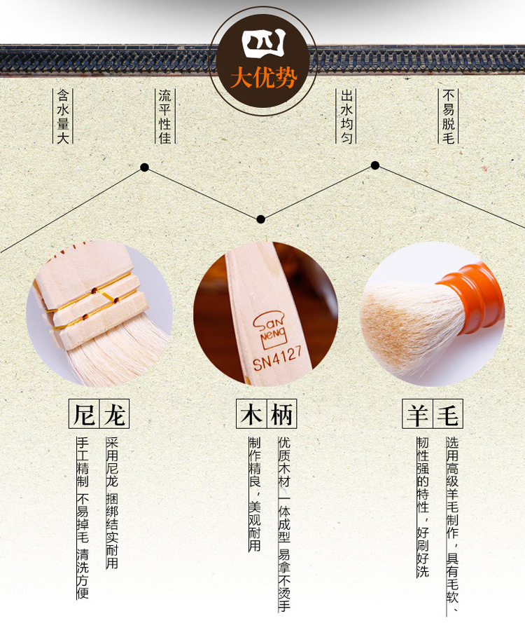| Brush handle material | Wooden handle |