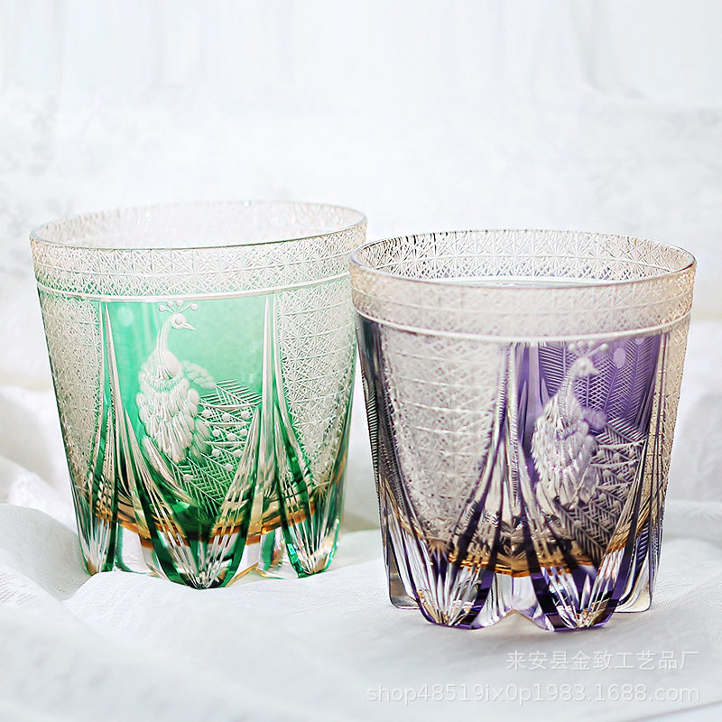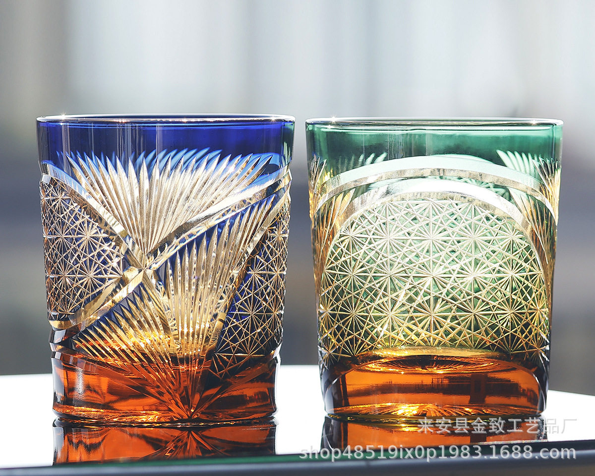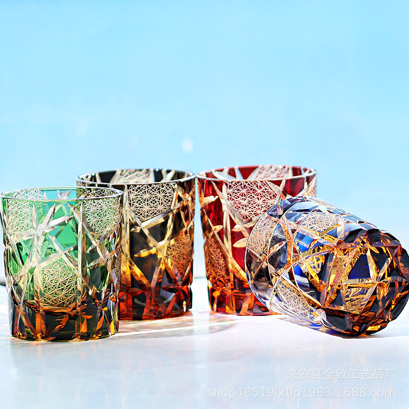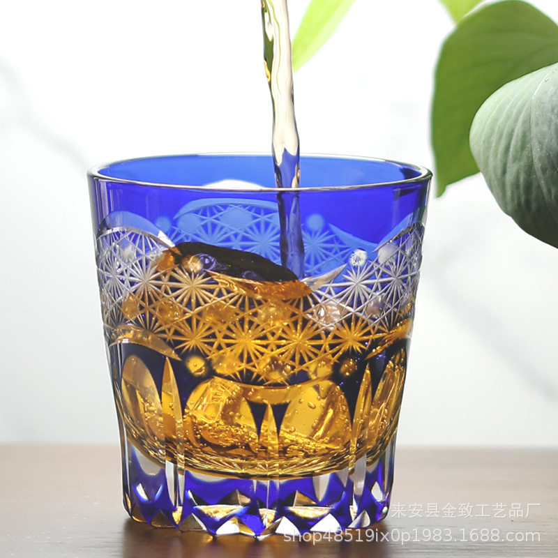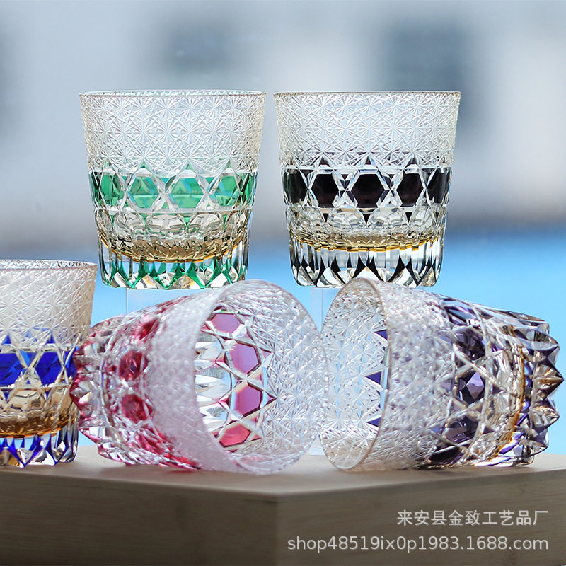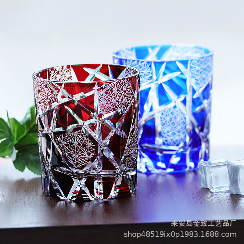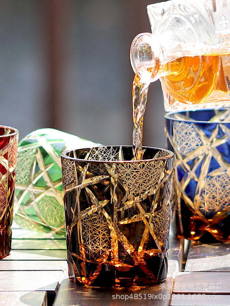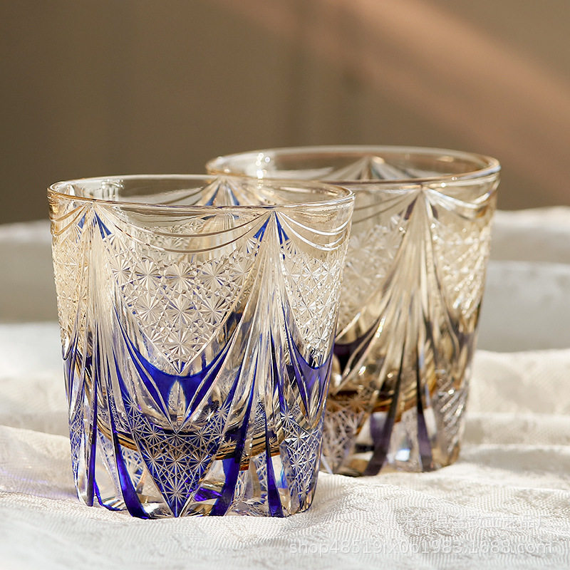 Japanese Edo Kiriko Whiskey Crystal Cup Hand-Carved High-End Wine Glass Set Beer Glass White Wine Glass