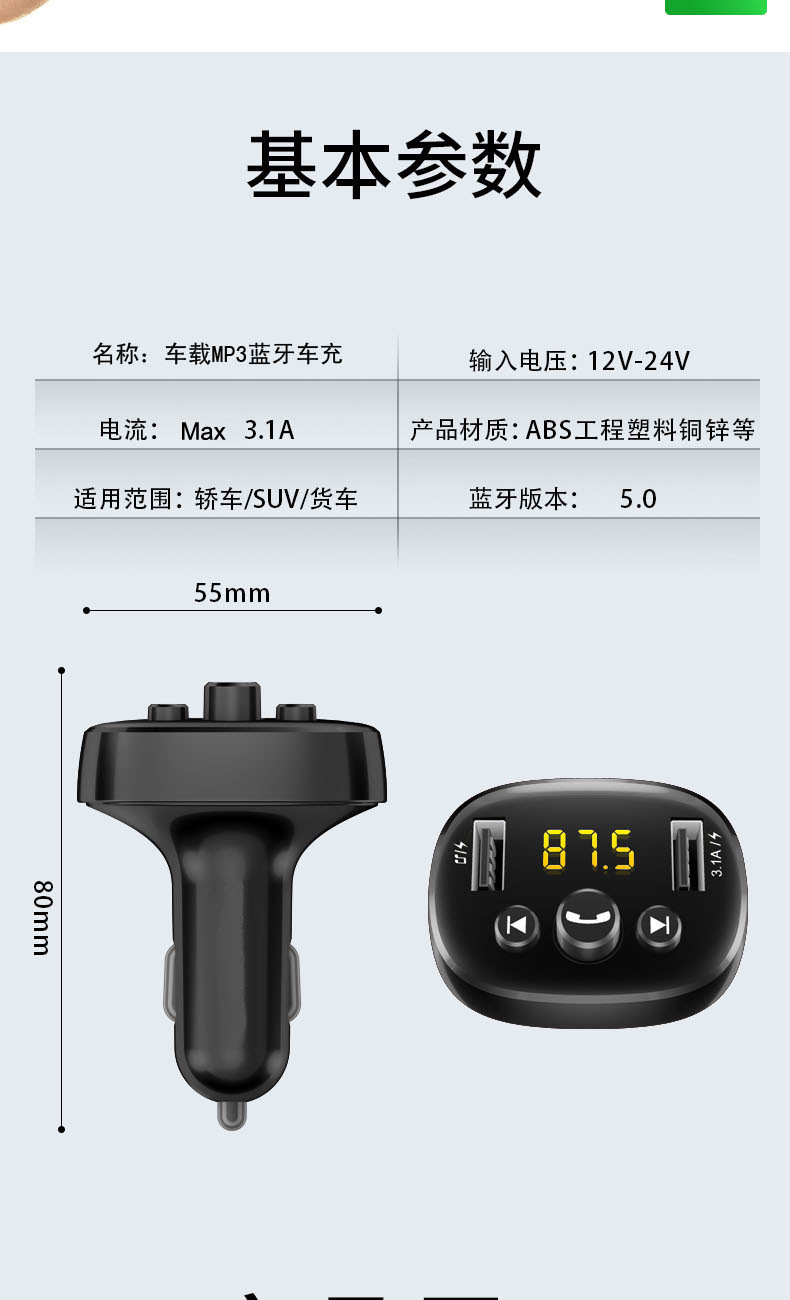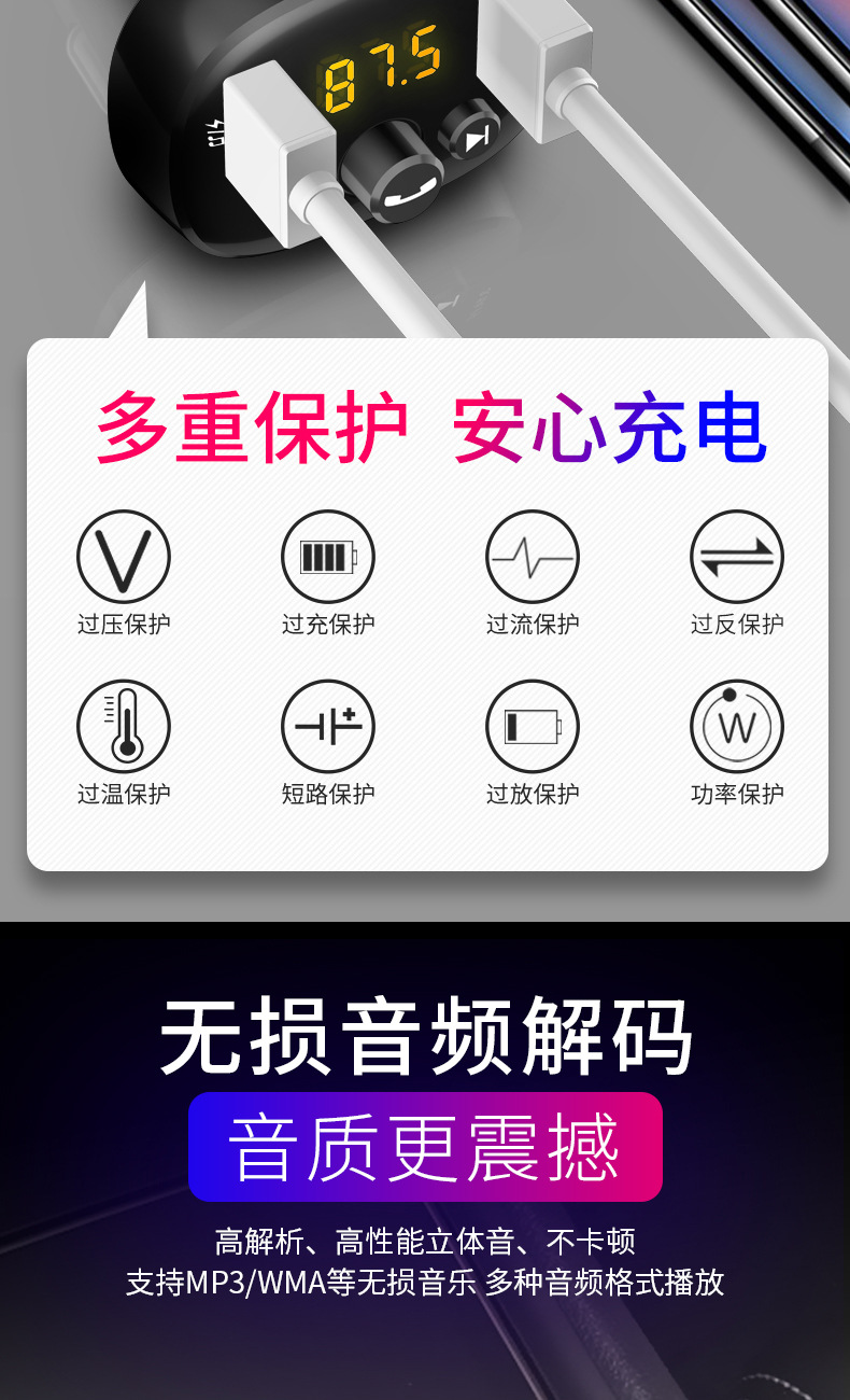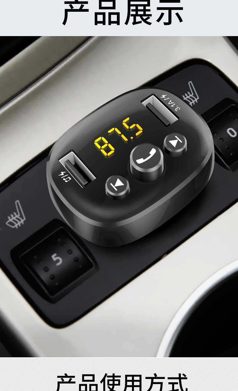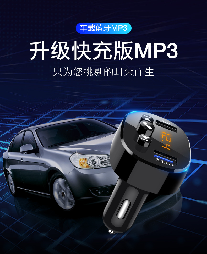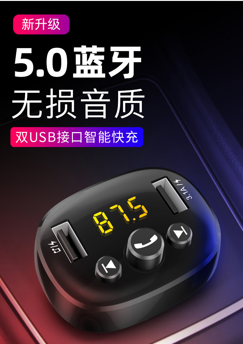 Multifunctional Car Bluetooth Mp3 Player Fm Receiver Dual USB Car Music U Disk Player Dual USB Charging