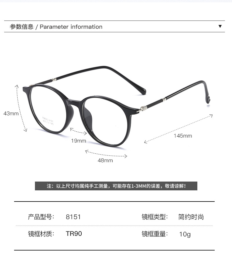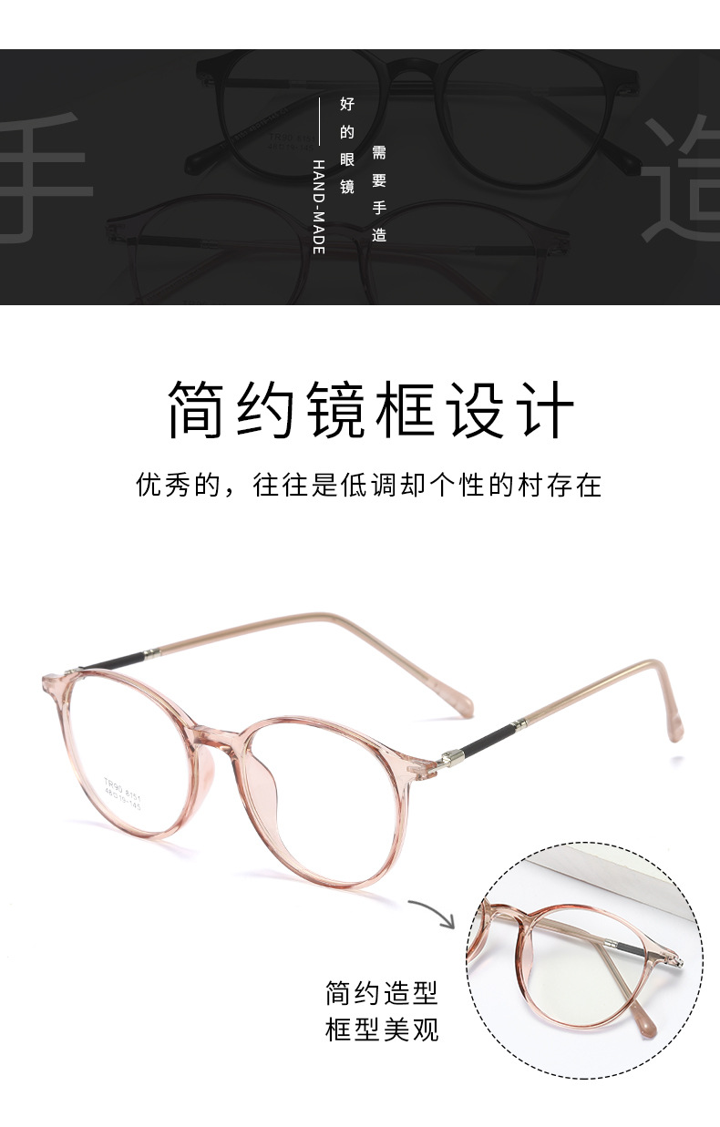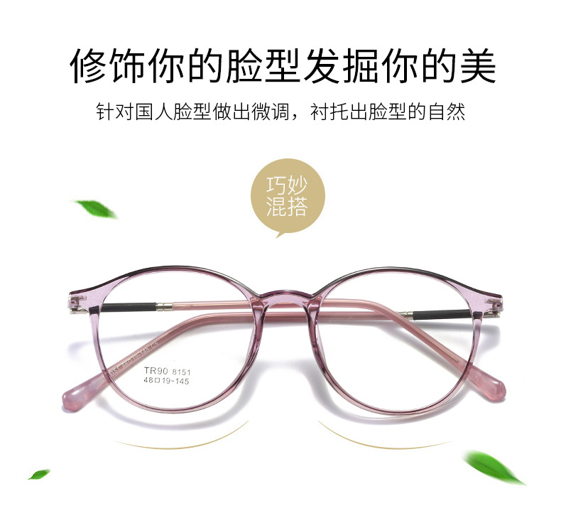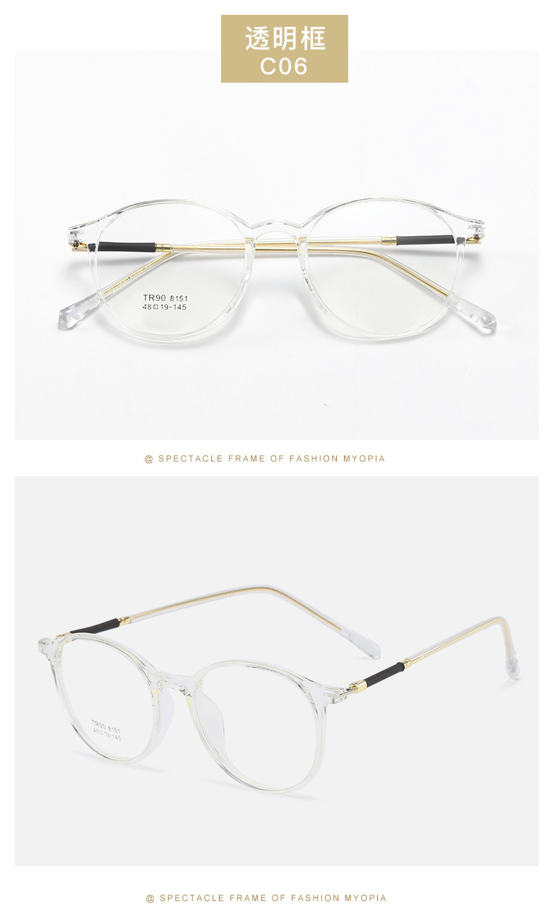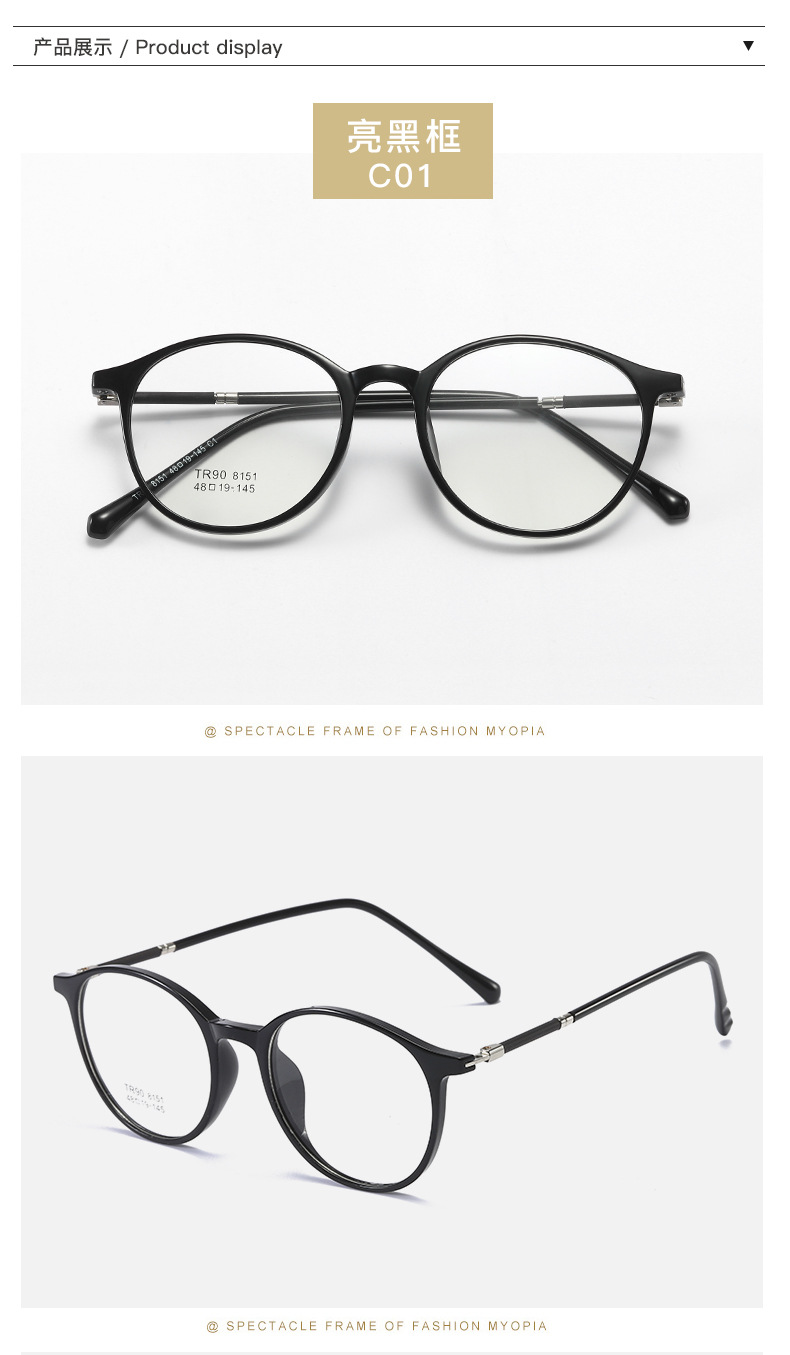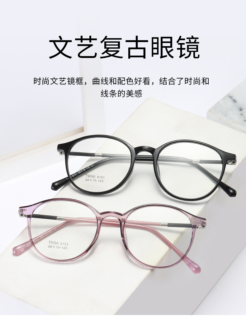New tr90 glasses retro glasses frame men's and women's literary transparent flat glasses glasses manufacturers direct 8151