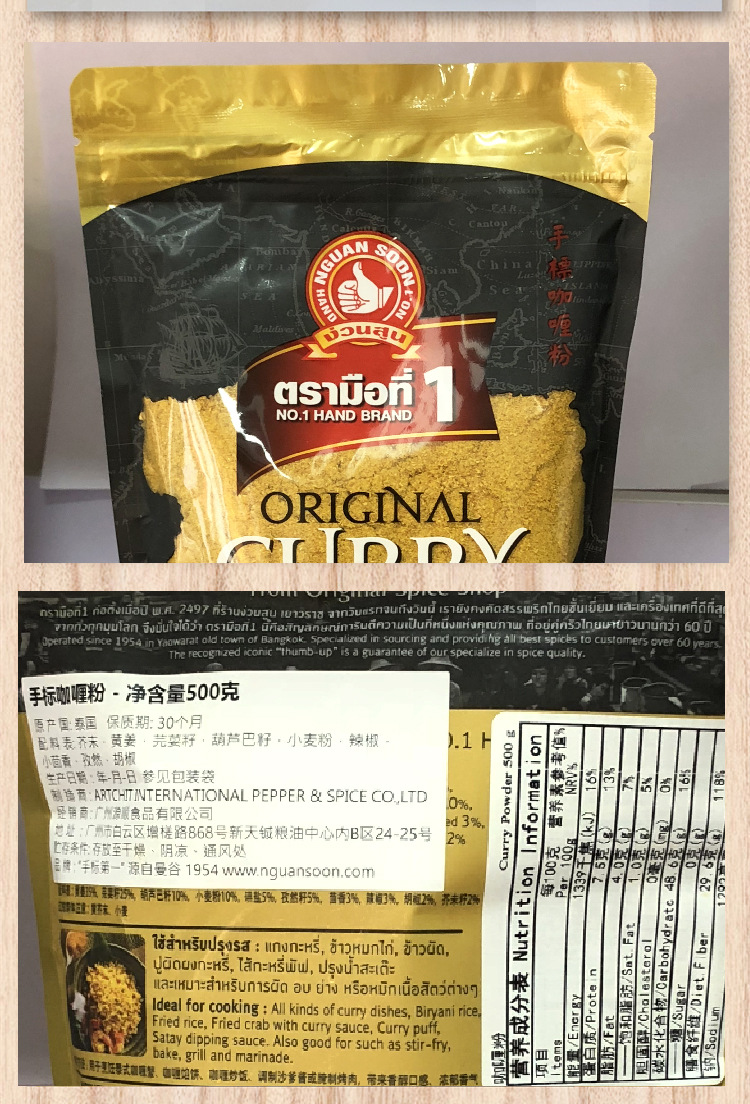 Thai imported hand-labeled curry powder 500g Thai yellow curry powder curry fried crab Thai curry seasoning powder