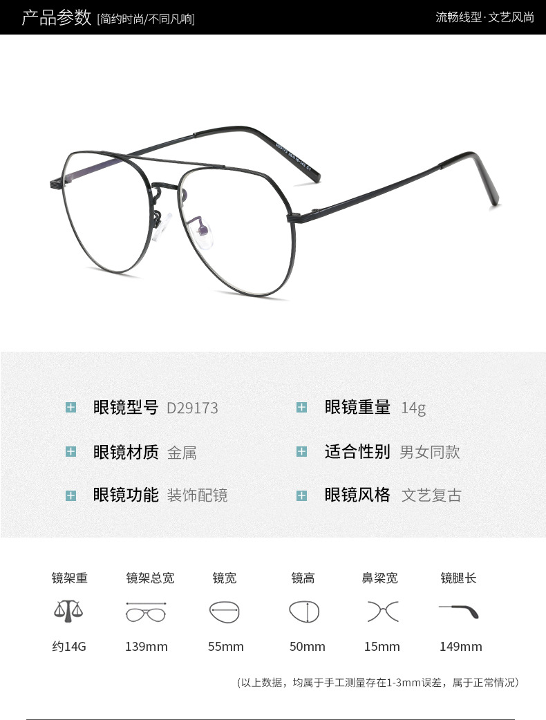 2021 new metal double beam myopia glasses frame toad frame men and women trend ultra light flat mirror wholesale D29173