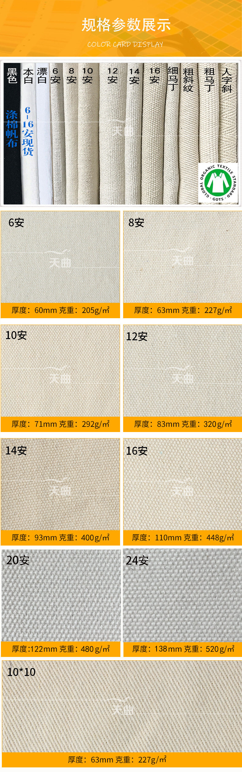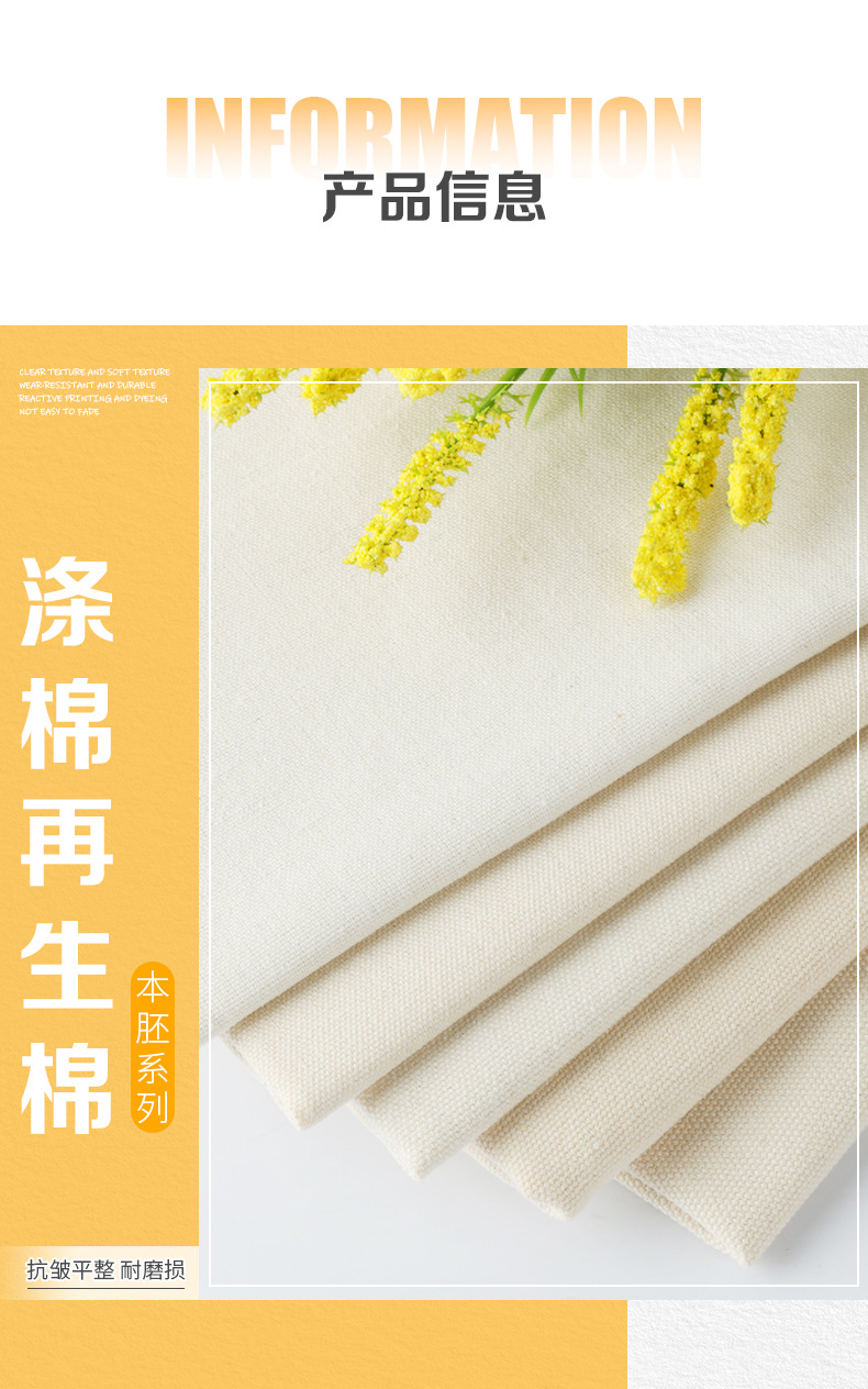 Spot polyester cotton canvas 8 A 12 A 16 A gray fabric natural color GRS black recycled cotton canvas handbag canvas fabric