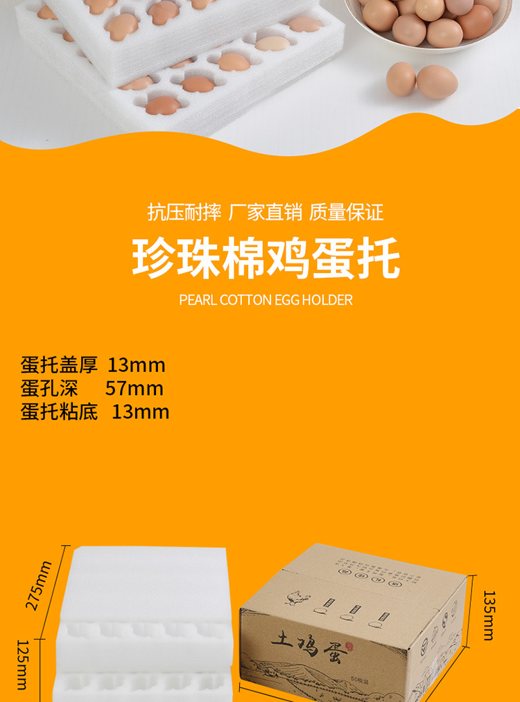 Zhongshan wholesale Pearl cotton egg tray horizontal release 50 pieces medium EPE anti-crushing foam cotton soil egg tray manufacturer