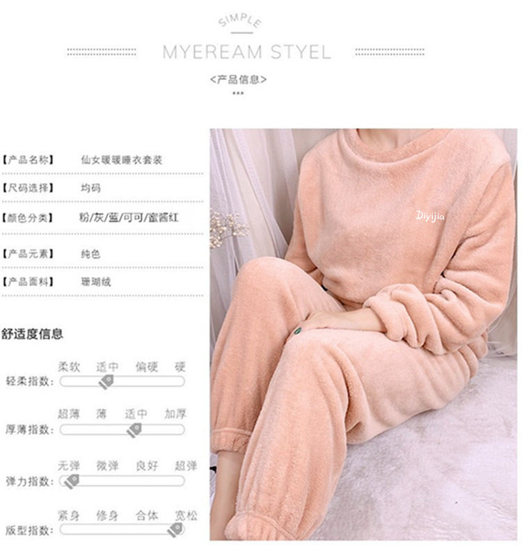 Fairy Warm Pants Set Warm Suit Women's Thick Coral Fleece Home Suit Outer Wear All-match Loose Lazy Suit