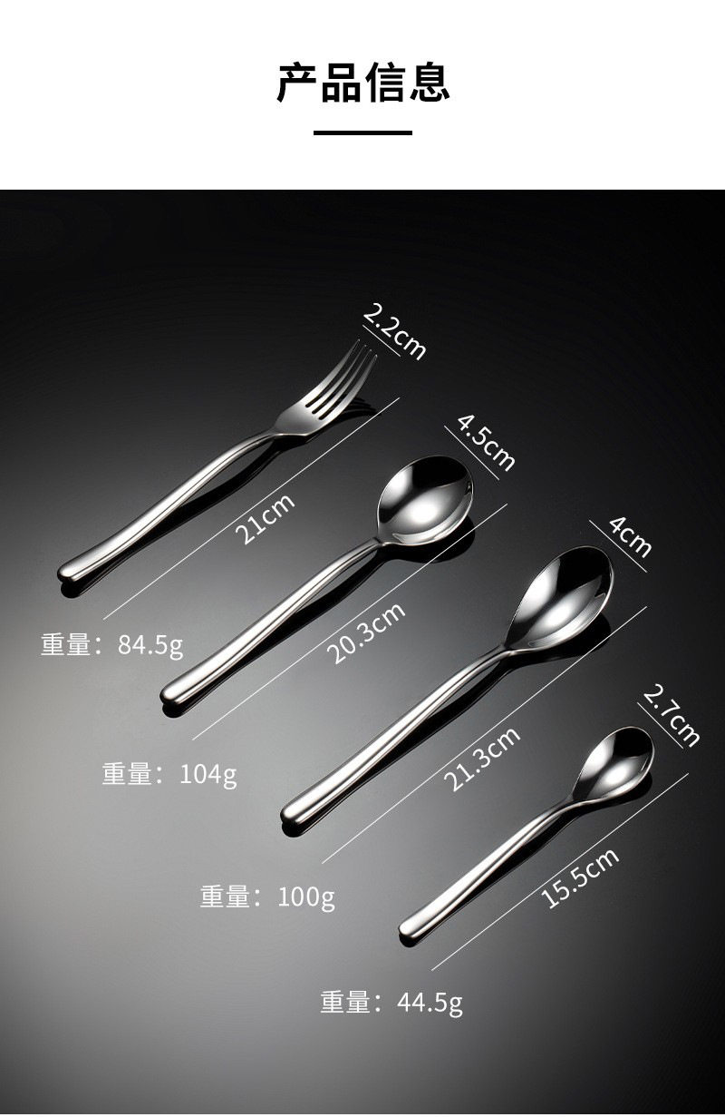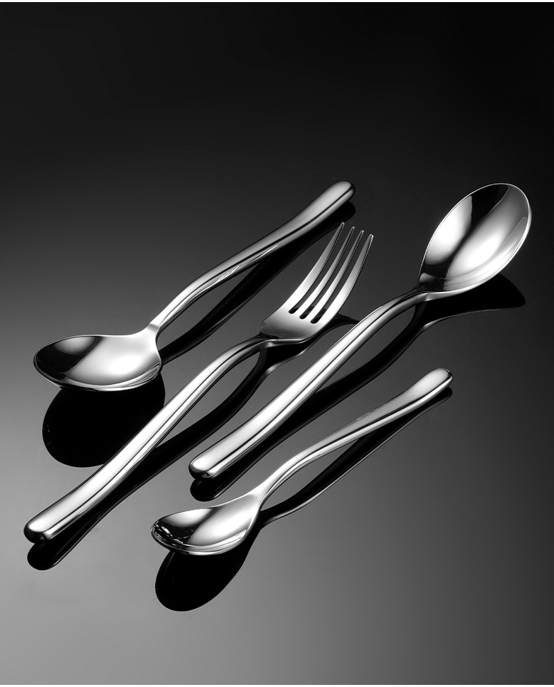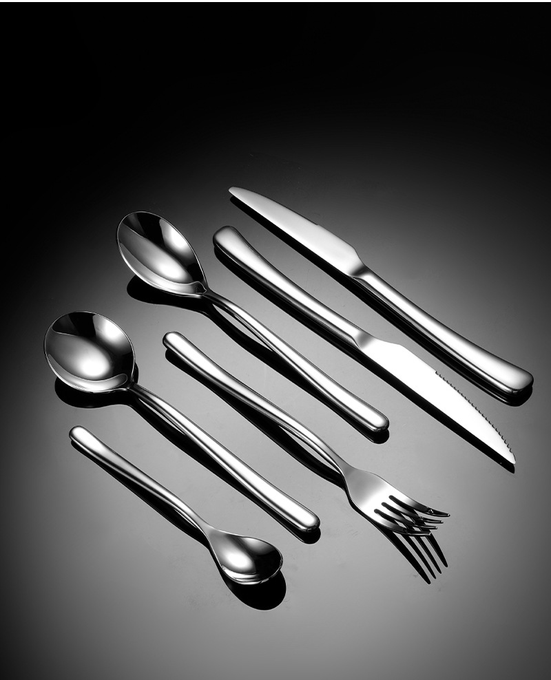 En 304 Stainless Steel Moonlight Knife and Fork Spoon Tableware suit Heavy Western Tableware Dessert Spoon Gift suit