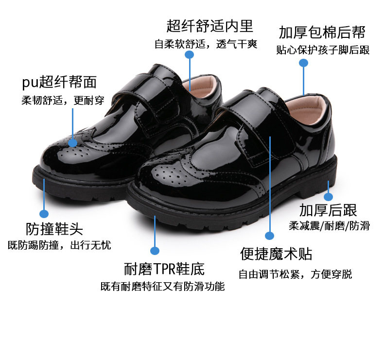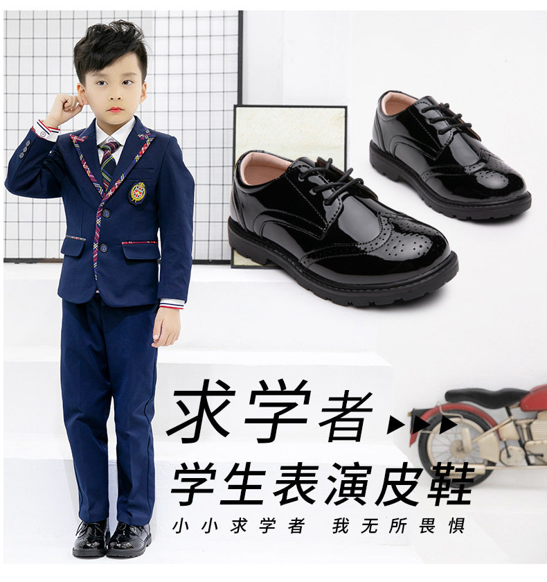 Boys' Leather Shoes 2025 Cross-Border European and American New Style Leather Shoes Children's Black British Style Big and Medium-Sized Children's Student Performance Shoes