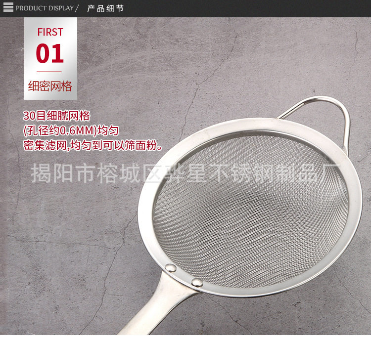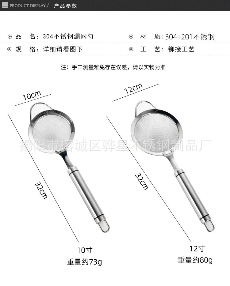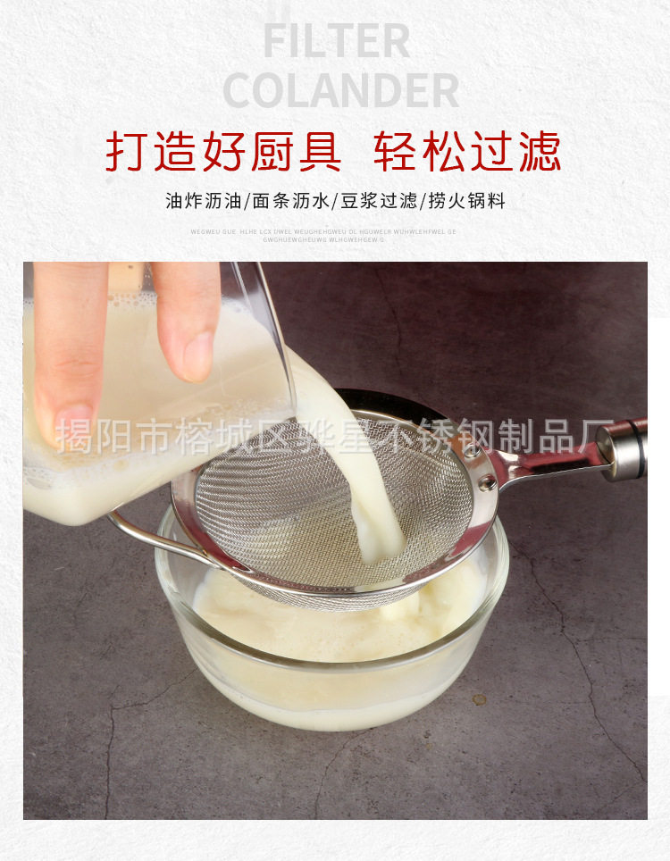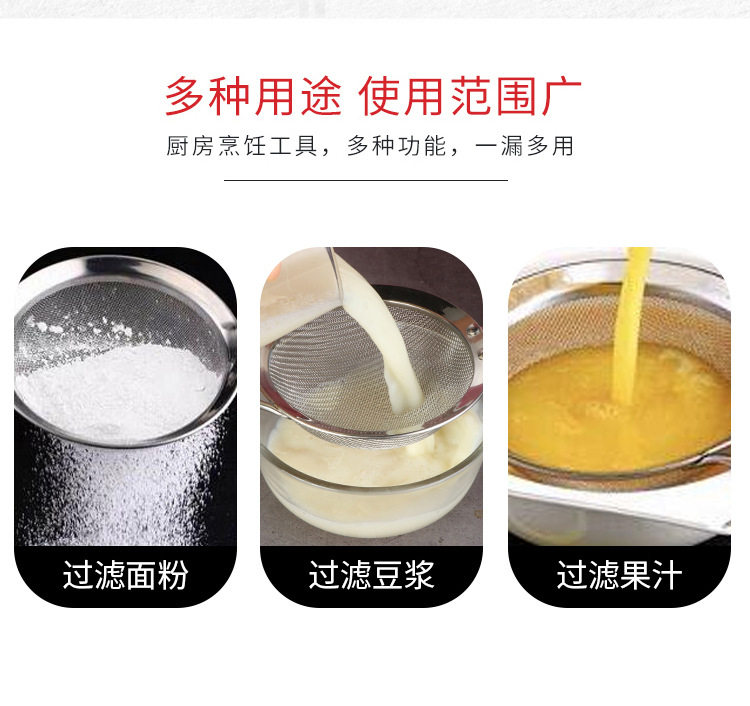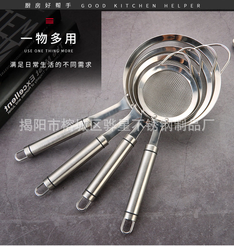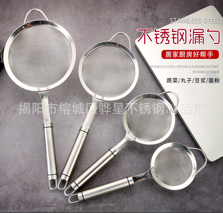 304 Stainless Steel Colander Mesh Flour Sieve Household Mesh Colander Hot Pot Soybean Milk Filter Spoon Kitchen Tools