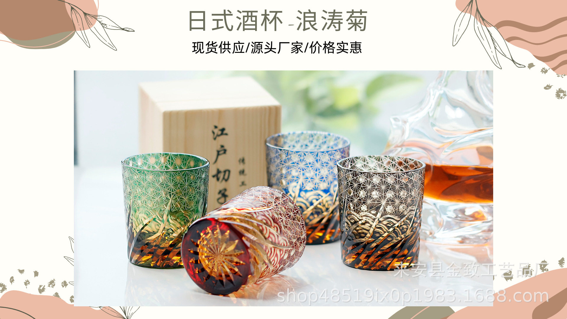 Edo Kiriko Crystal Cup Hand-Carved Whiskey Glass Red Wine Glass High-End Liquor Glass Beer Glass