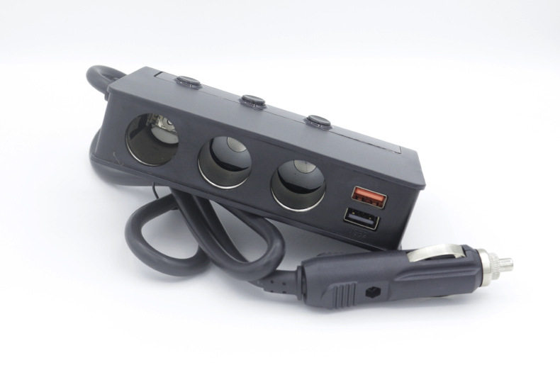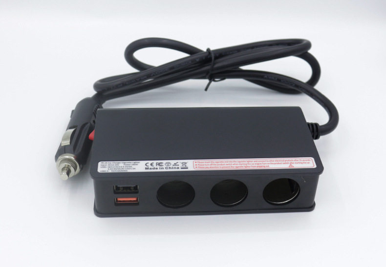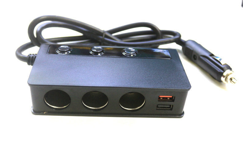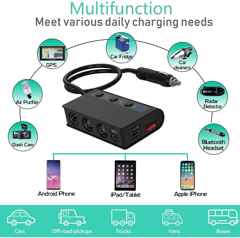 New Car Cigarette Lighter Adapter with Three Ports, Switch, 4 Usb, 180W High Power, Qc3.0 Fast Charging Charger with Digital Display