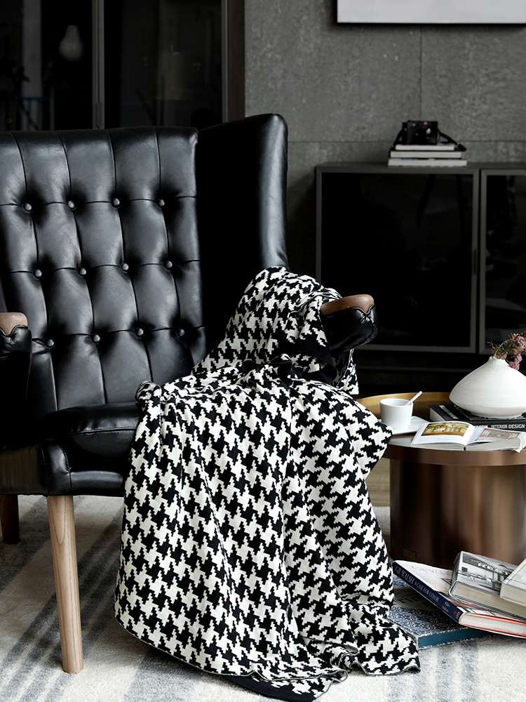 Nordic Style Houndstooth Blanket Board Room Sofa Blanket Soft Blanket Knitted Blanket Wool Leisure Blanket