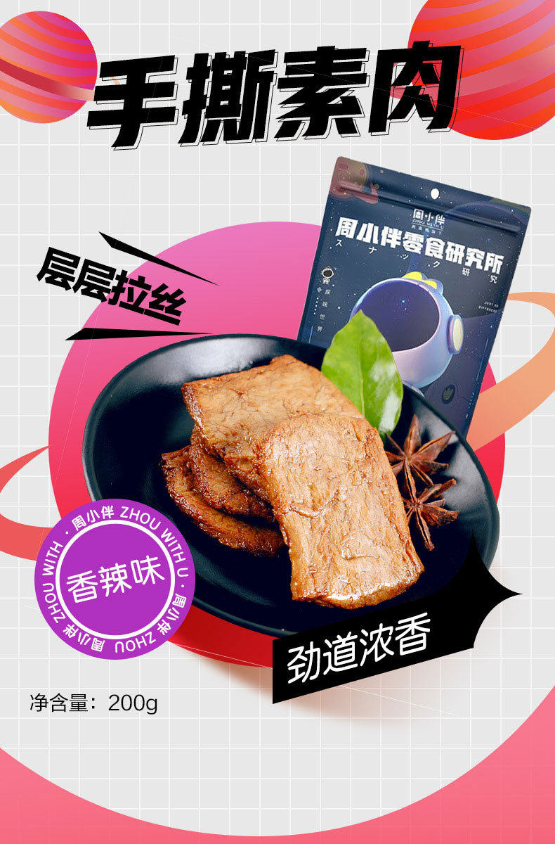 | Packaging specifications | Zhou Heiya Zhou Xiaoyou shredded vegetarian meat 200g |