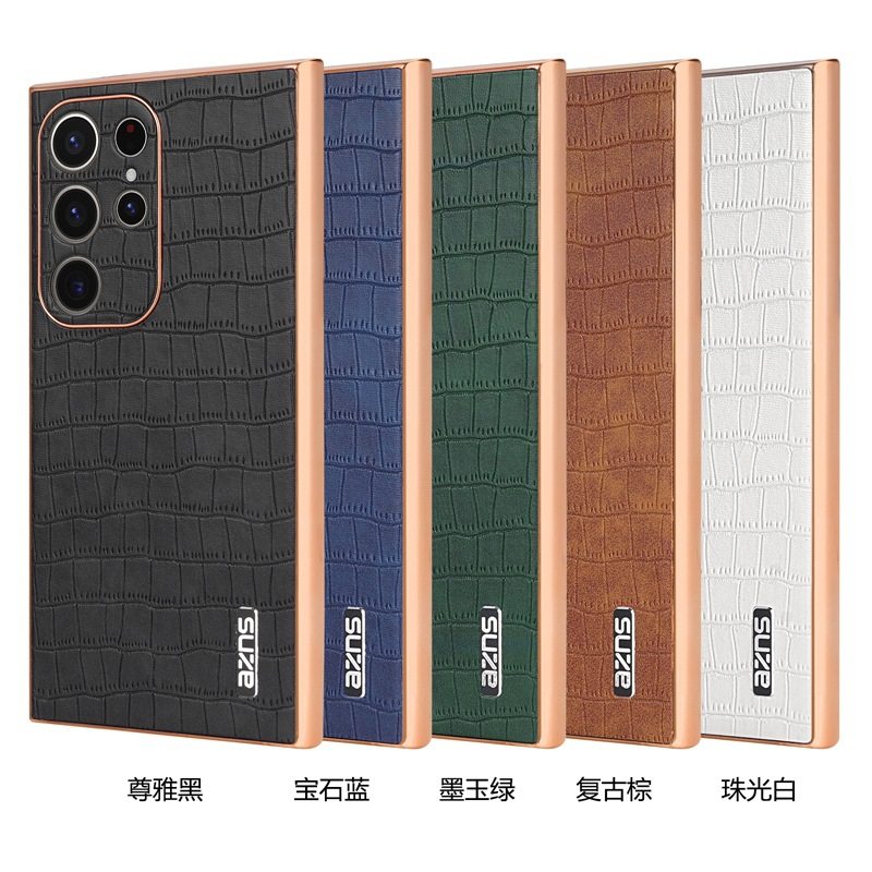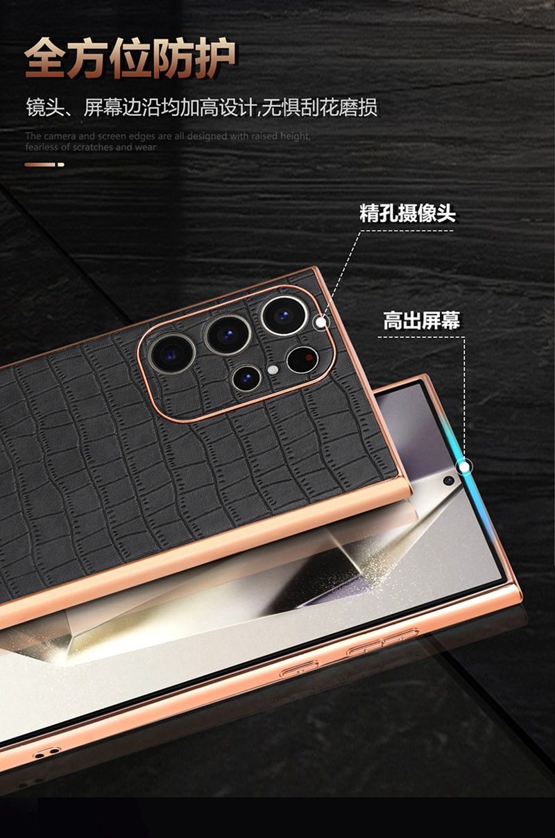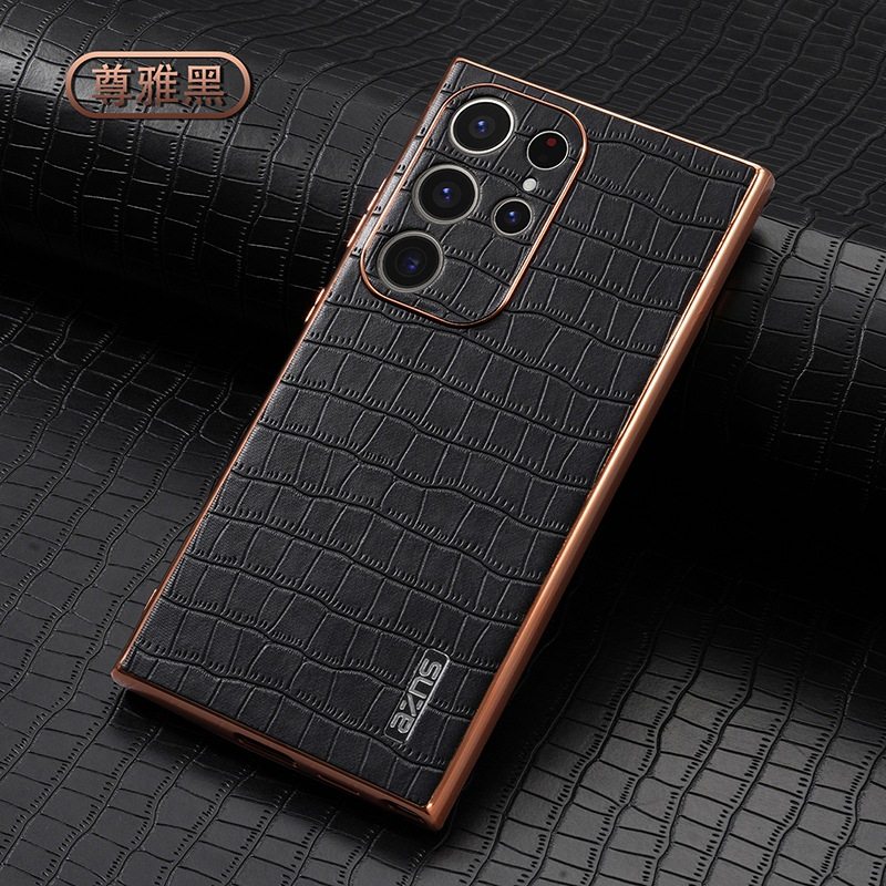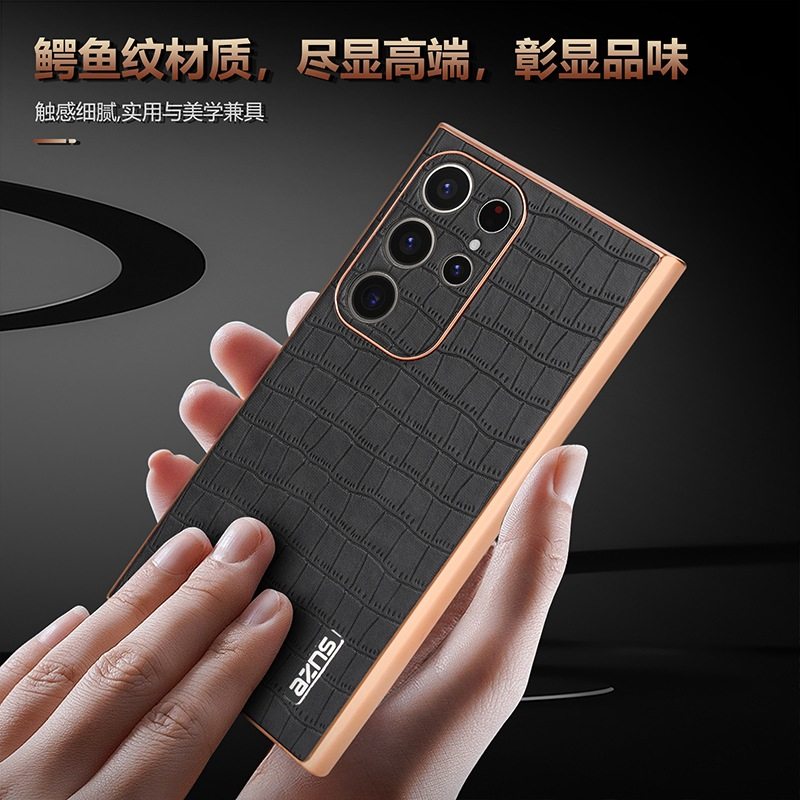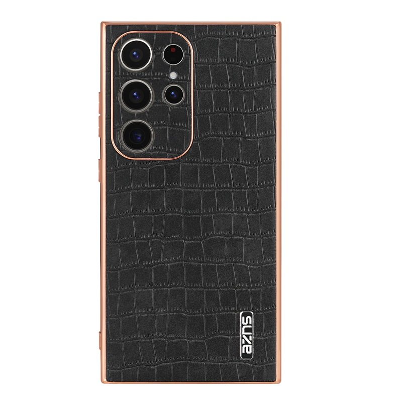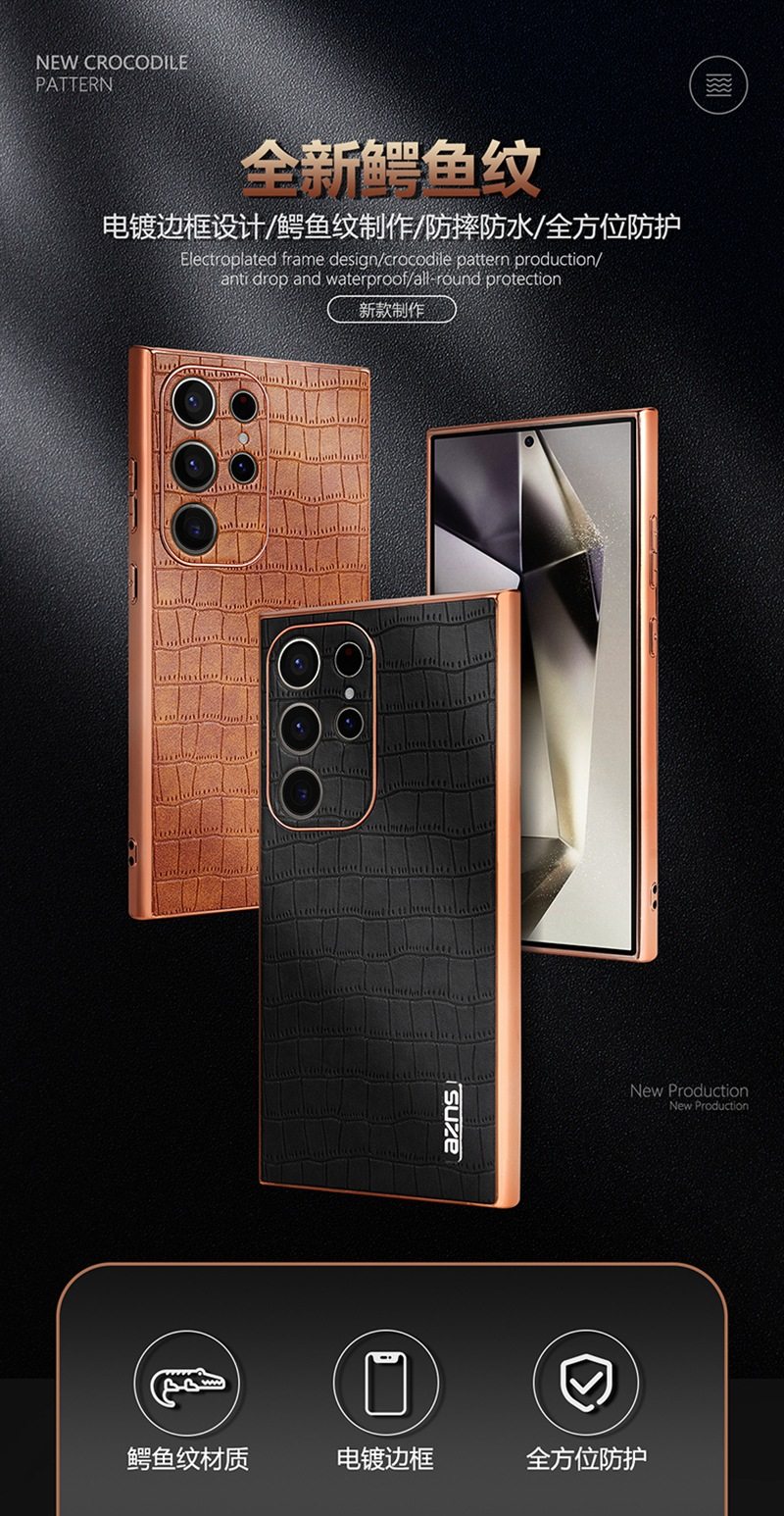 For Samsung S25Ultra Crocodile Embossed Phone Case S24FE Electroplated Border A56 Protective Case A35 Tide