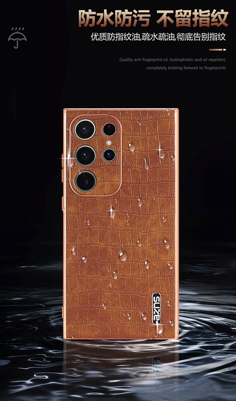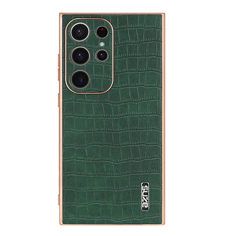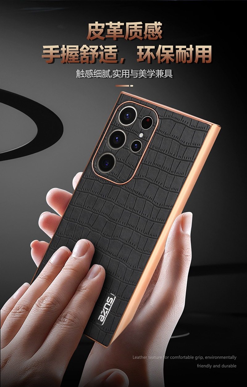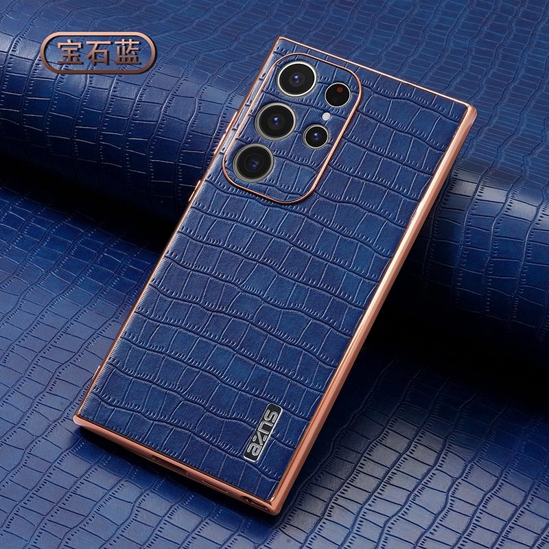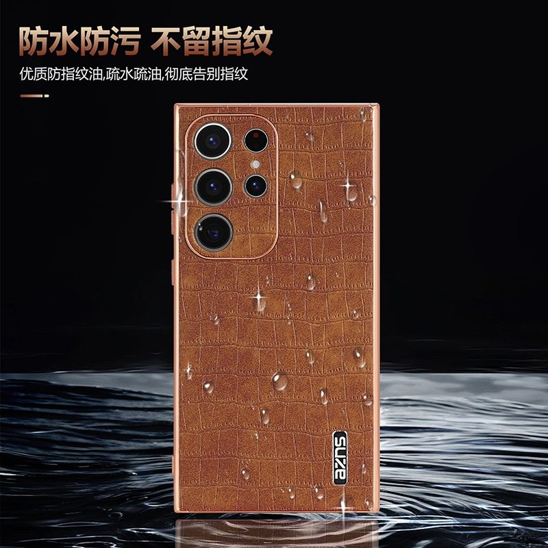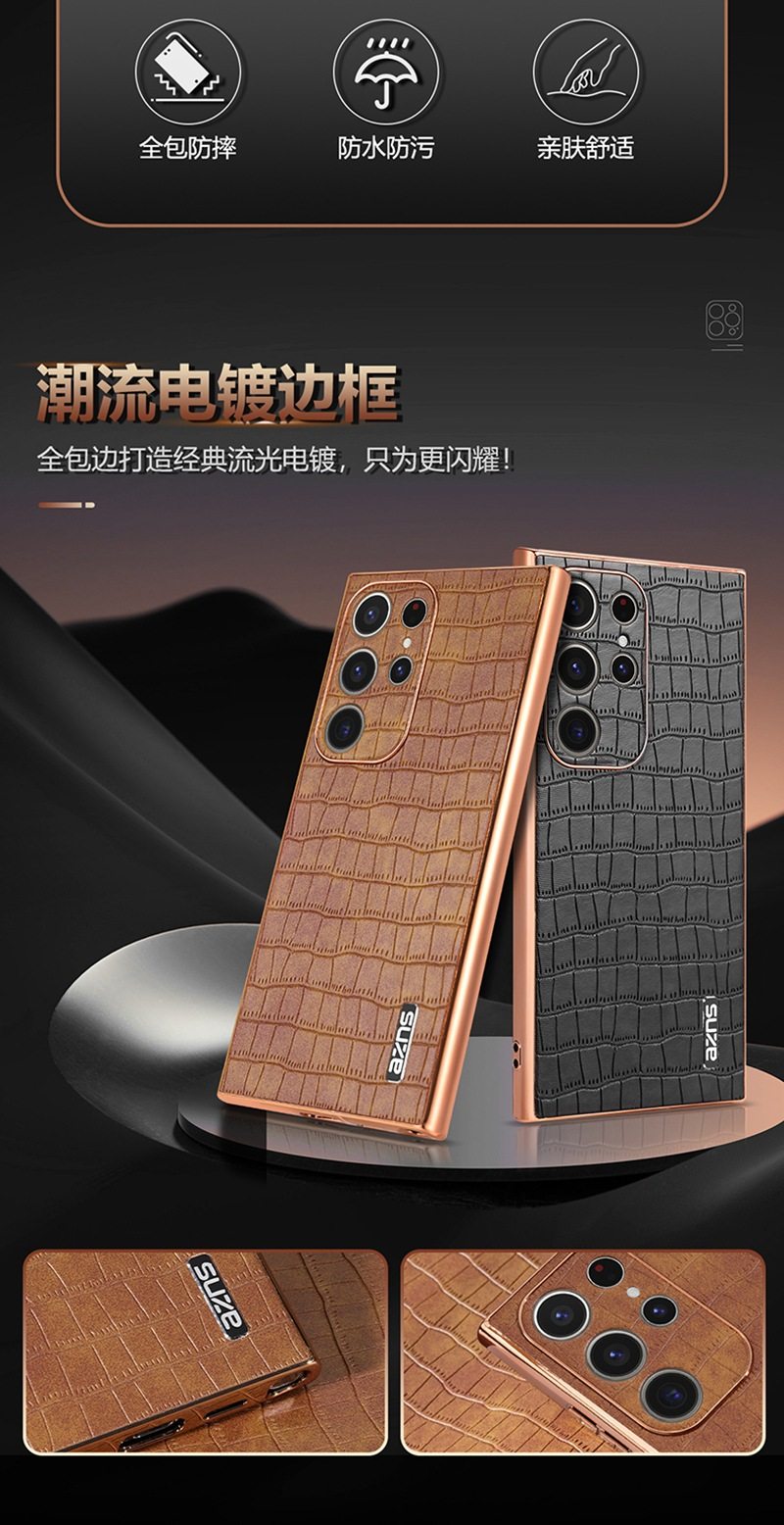 For Samsung S25Ultra Crocodile Embossed Phone Case S24FE Electroplated Border A56 Protective Case A35 Tide