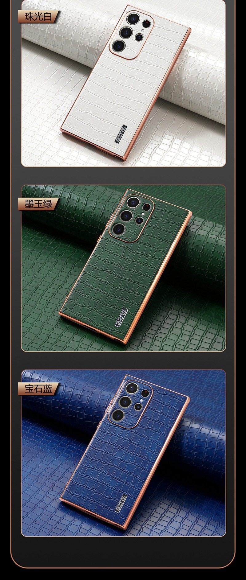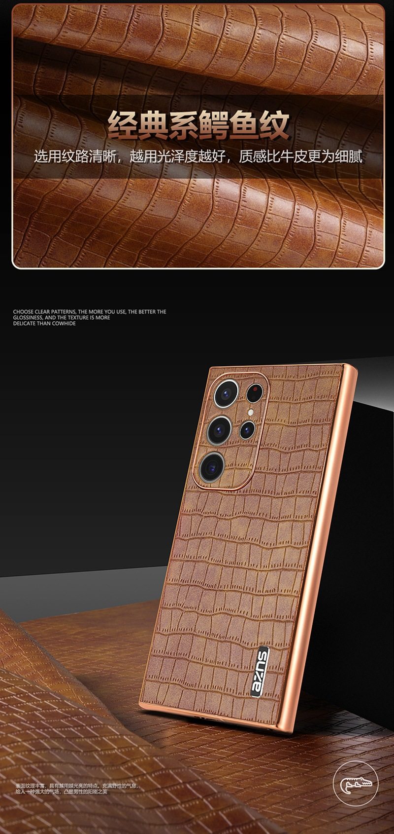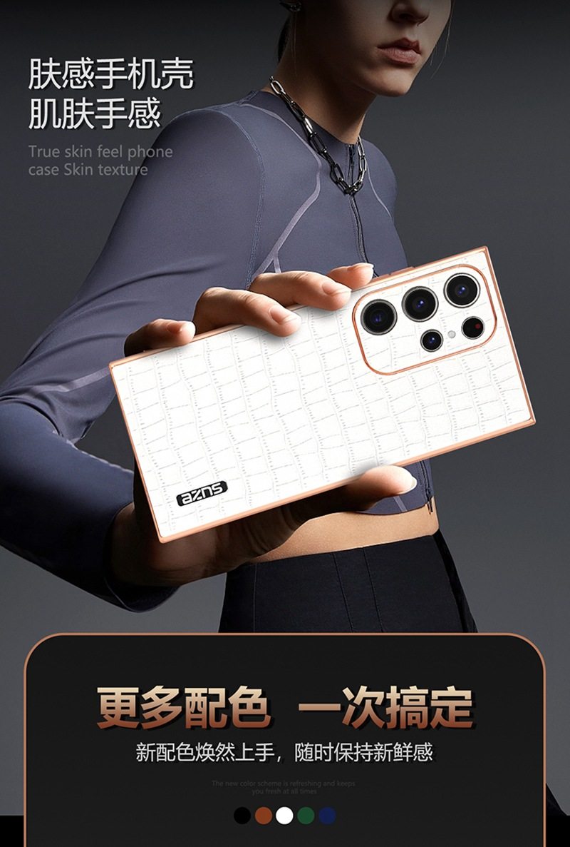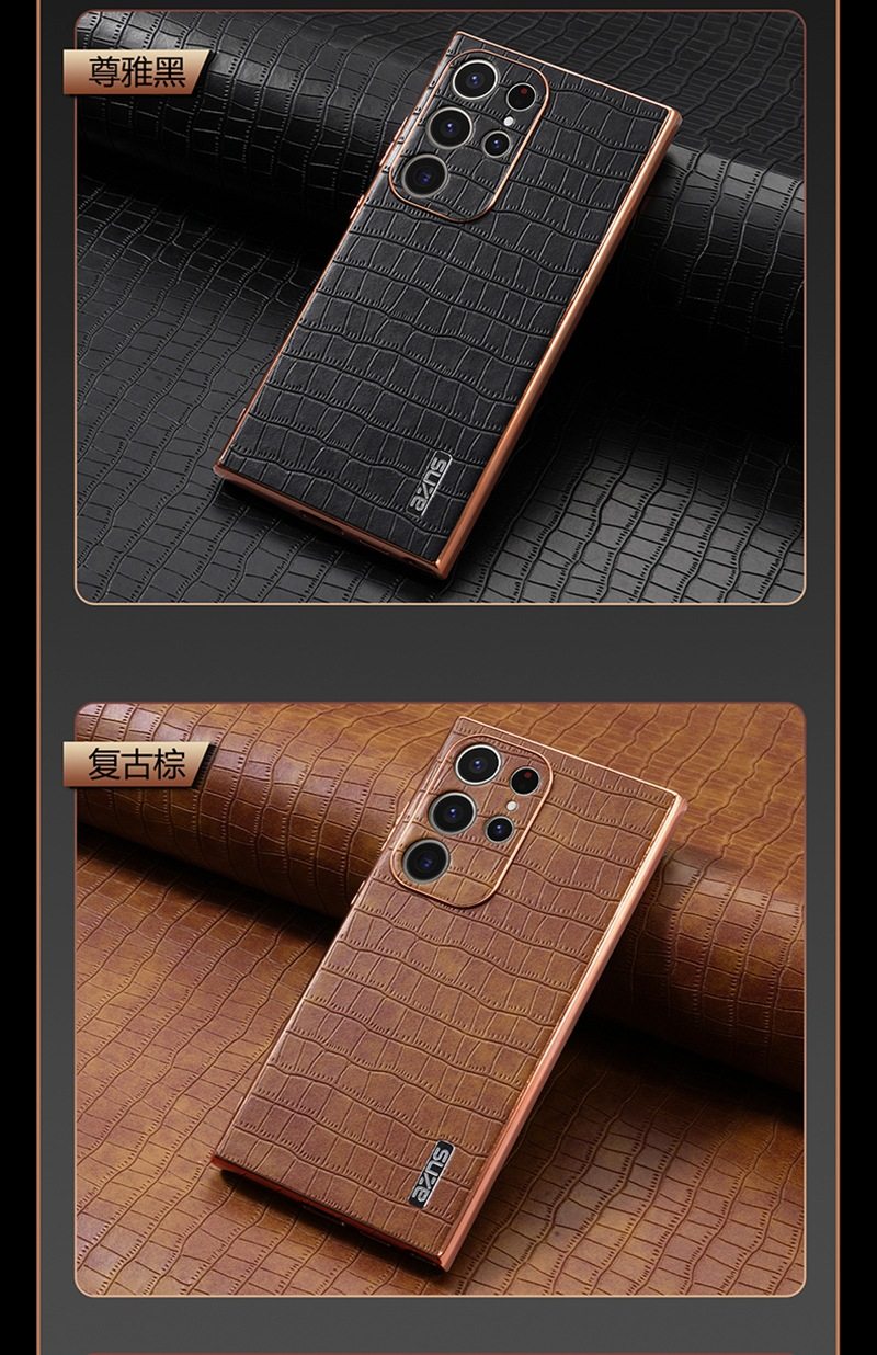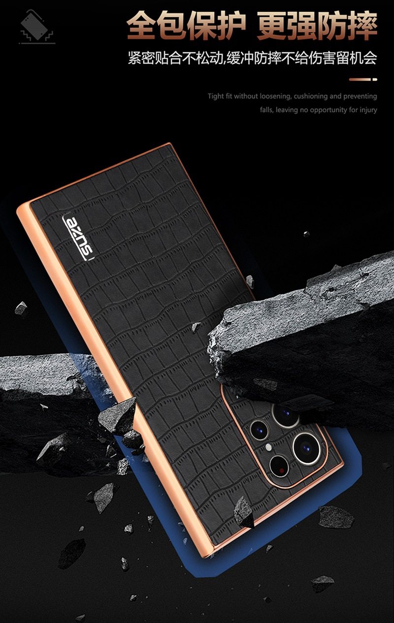 For Samsung S25Ultra Crocodile Embossed Phone Case S24FE Electroplated Border A56 Protective Case A35 Tide
