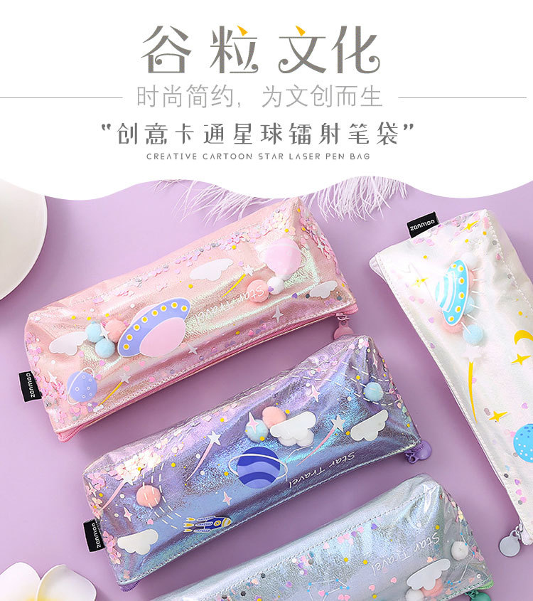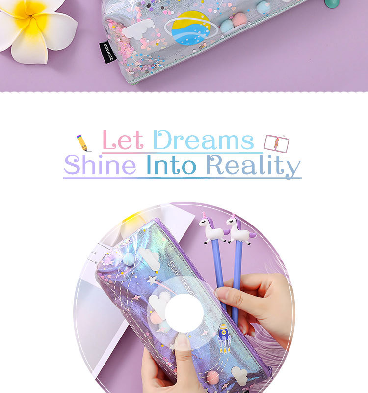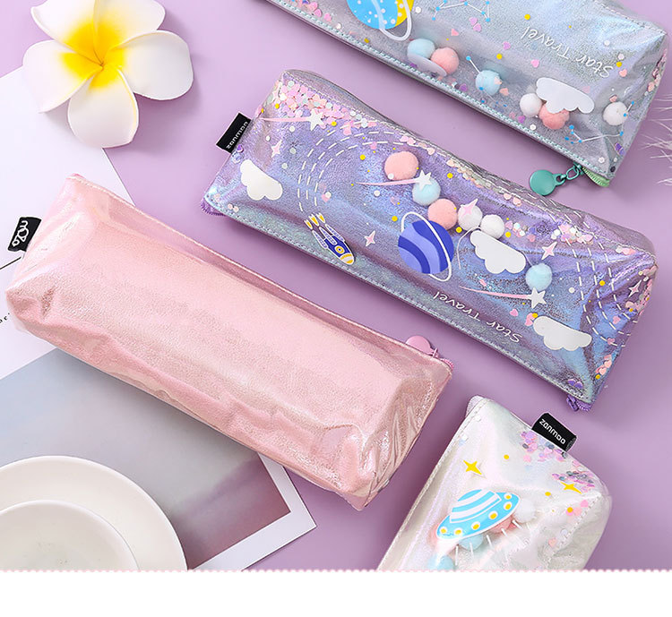 Creative Star Star quicksand pencil case ins student personalized stationery bag waterproof gorgeous stationery case laser pen case