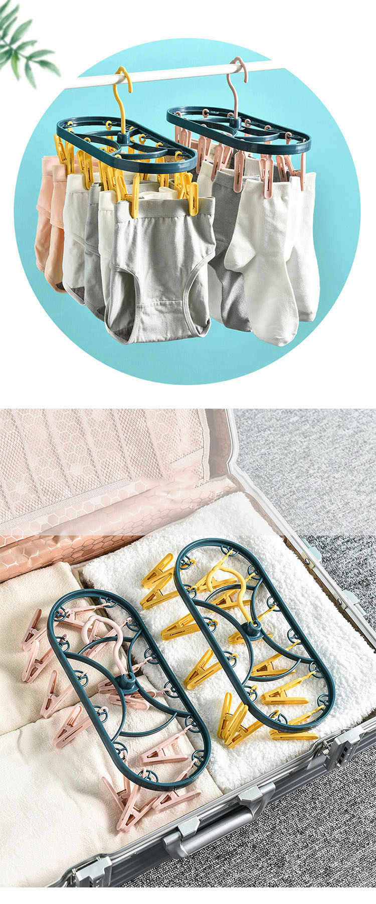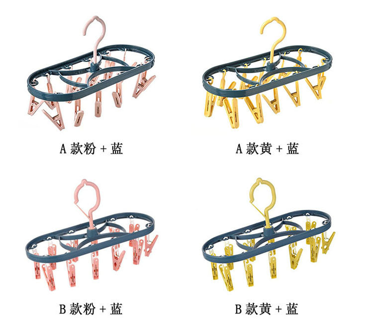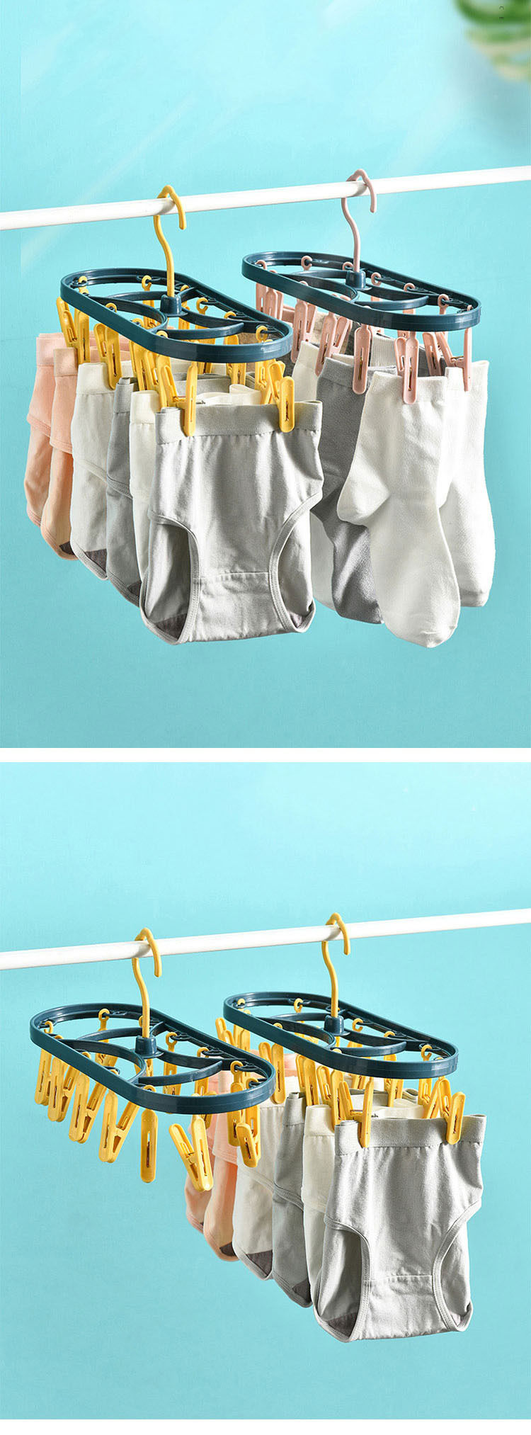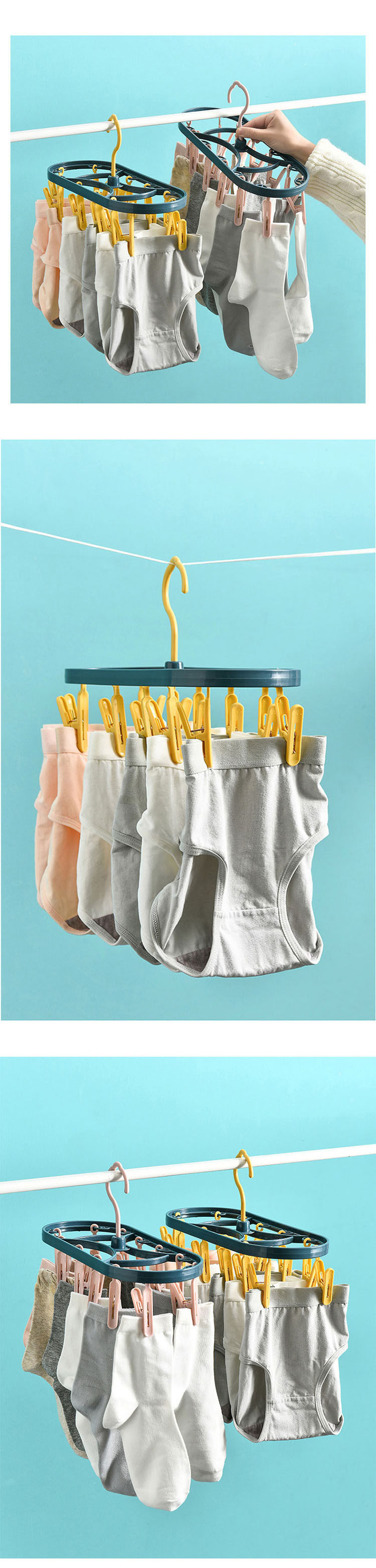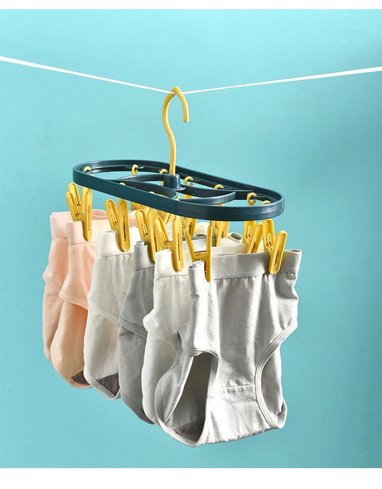 Household Balcony 12 Clip Clothes Hanger Underwear Socks Plastic Oval Multi-head Two-color Windproof Clip Children's Drying Hanger