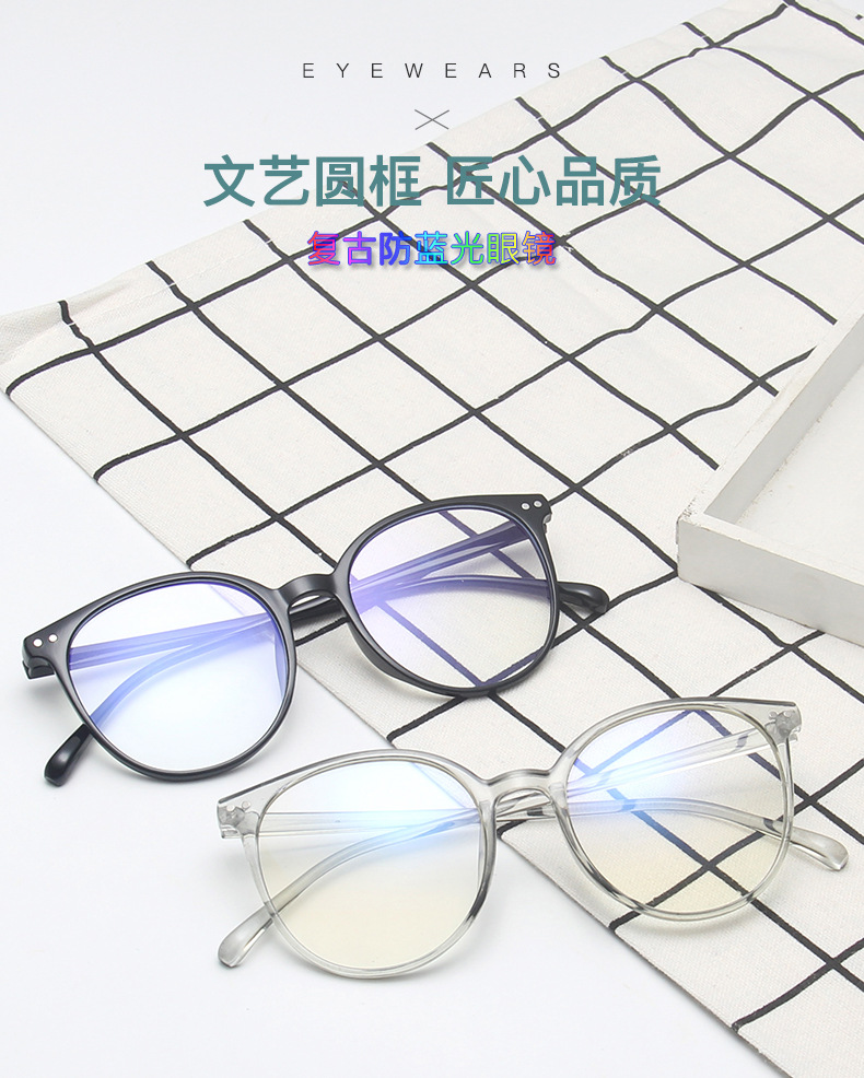 Anti-Blue Light Korean Style Retro Round Frame Flat Mirror Retro Midin Natural Small Fresh Glasses Frame Light Fashionable Frame
