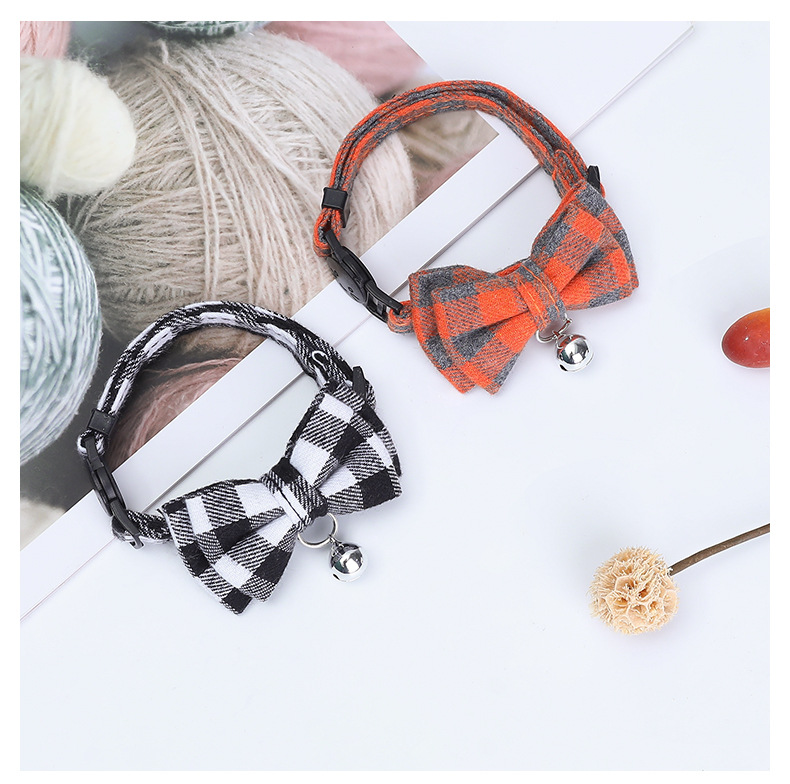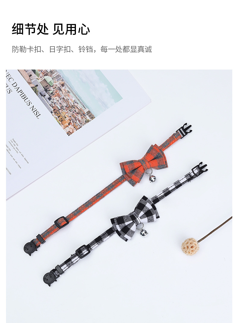 Pet Collar British Plaid Bow Cat Collar Buckle with Bell Cat Collar Factory Outlet