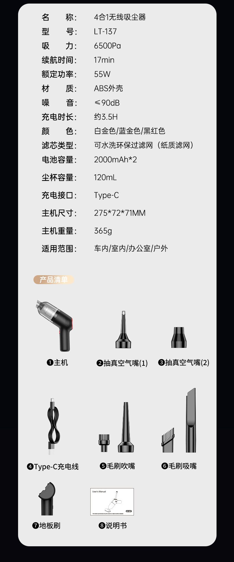 | Vacuum suction | 9000Pa |
