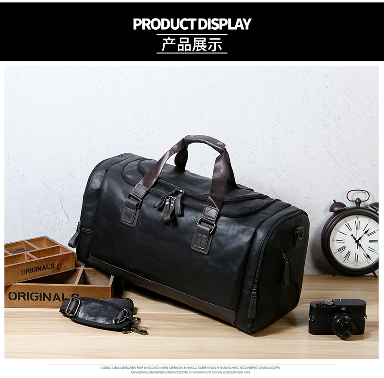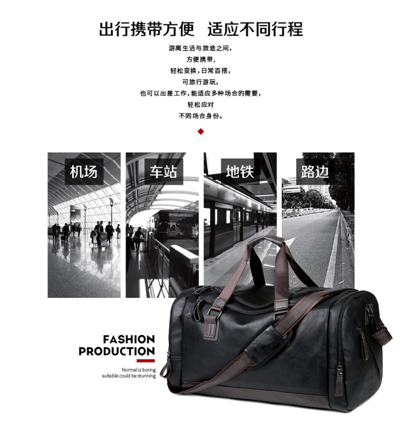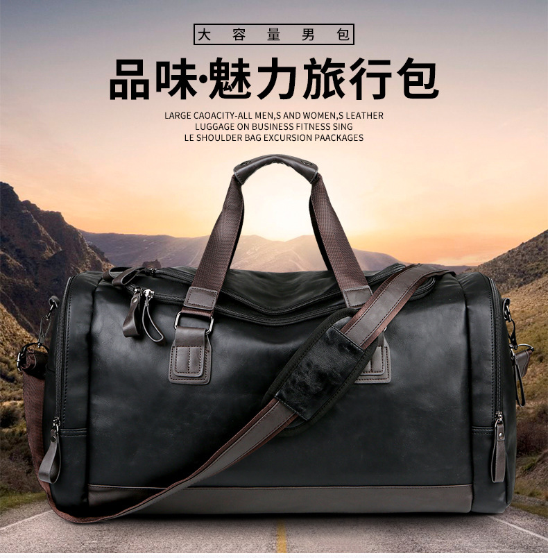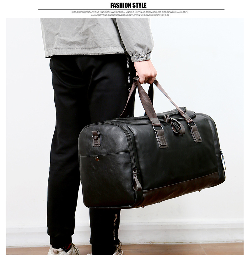 PU Leather Super Large Capacity Travel Bag Men's Business Travel Duffel Bag Travel Backpack Korean Portable Shoulder Size