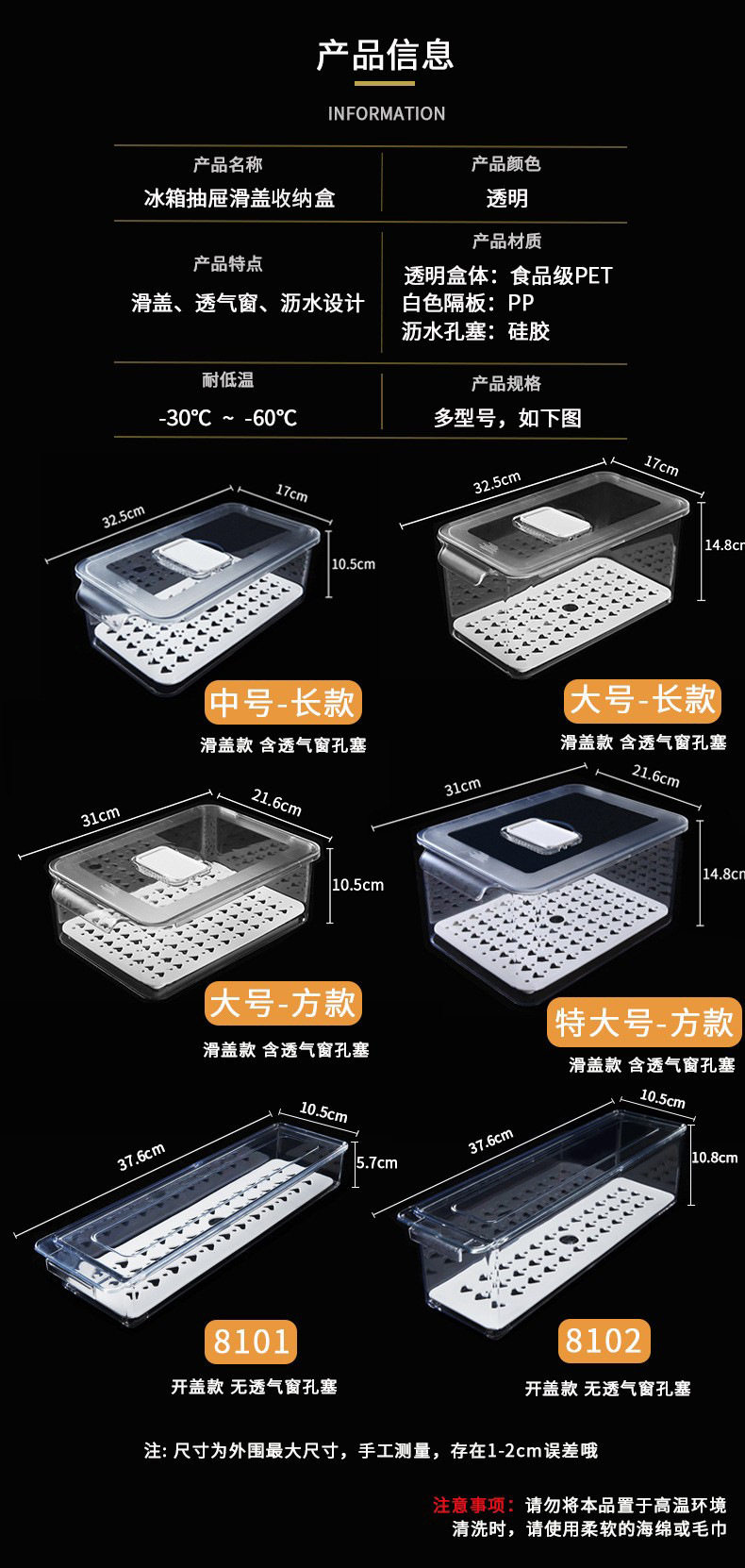 Specifications Upgrade Slide Large Long (One Pack),Upgraded Slide Large Square (One Pack),Upgraded Slide Large Long Draining Board (One Pack),Upgraded Slide Large Square Drainer (One Pack),Upgrade sliding egg box (one pack),Upgrade Slide Medium Long (One Pack),Upgraded Slide Medium Long Draining Board (One Pack),Upgrade slide cover extra large square (one pack),Upgraded Slide Cover Extra Large Square Draining Board (One Pack),Upgraded Crystal Glass Drawer Medium,Upgraded Crystal Transparent Drawer Large,Upgraded Crystal Transparent Drawer Medium with Draining Board,Upgraded Crystal Transparent Drawer Large with Draining Panel,Upgraded crystal transparent drawer with larger number,Upgraded Crystal Transparent Drawer Plus Size with Draining Board,Upgraded Crystal Transparent Drawer Oversized,Upgraded Crystal Clear Drawer Oversized with Draining Board,Upgraded Large Drawer-Pearlescent Dumpling Box,Upgrade Large Drawer-Obsidian Shadow Black Dumpling Box,Upgrade large drawer-pearlescent dumpling box,Upgrade Plus Drawer-Obsidian Shadow Black Dumpling Box,Plus size pearlescent egg box,Plus No. Obsidian Shadow Black Egg Box,Large pearlescent egg box 1 layer,Large pearlescent egg box 2 layers,Large pearlescent egg box 3 layers