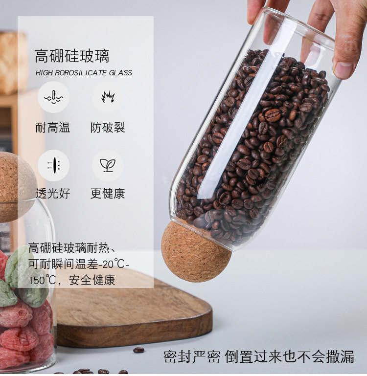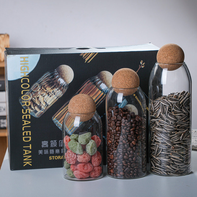 Borosilicate glass sealed jar household coffee bean storage box kitchen grains Cork tea jar gift box