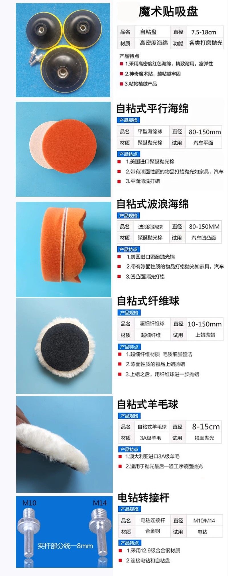 | Color | 3inch hair ball 3 piece set,4inch sponge 3-piece set,4inch hair ball 3 piece set,3inch car polishing 6-piece set [m10],4inch car polishing 6-piece set [m10],5inch car polishing 6-piece set [m10],5inch car polishing 6-piece set [m14],6inch car polishing 6-piece set [m14],7inch car polishing 6-piece set [m14],4inch car polishing 10-piece set [m10],[suits can be combined in any way],6-inch 7-piece set [hair ball set],3inch self-adhesive disc screws + 5 hair balls,4inch self-adhesive disc screws + 5 hair balls,Hair ball + blue microfiber ball【4inch】,Electric cleaning 4-piece set,5inch wool ball*6+ polishing disc*1+ screw rod*1,Decontamination polishing wax,Scratch repair wax,4inch car polishing suit,3inch car polishing 10-piece set [m10],3inch car polishing 6-piece set [m14],5inch car polishing 10-piece set [m10],3 inch 11 piece set,Car polishing wax,Automotive wax |